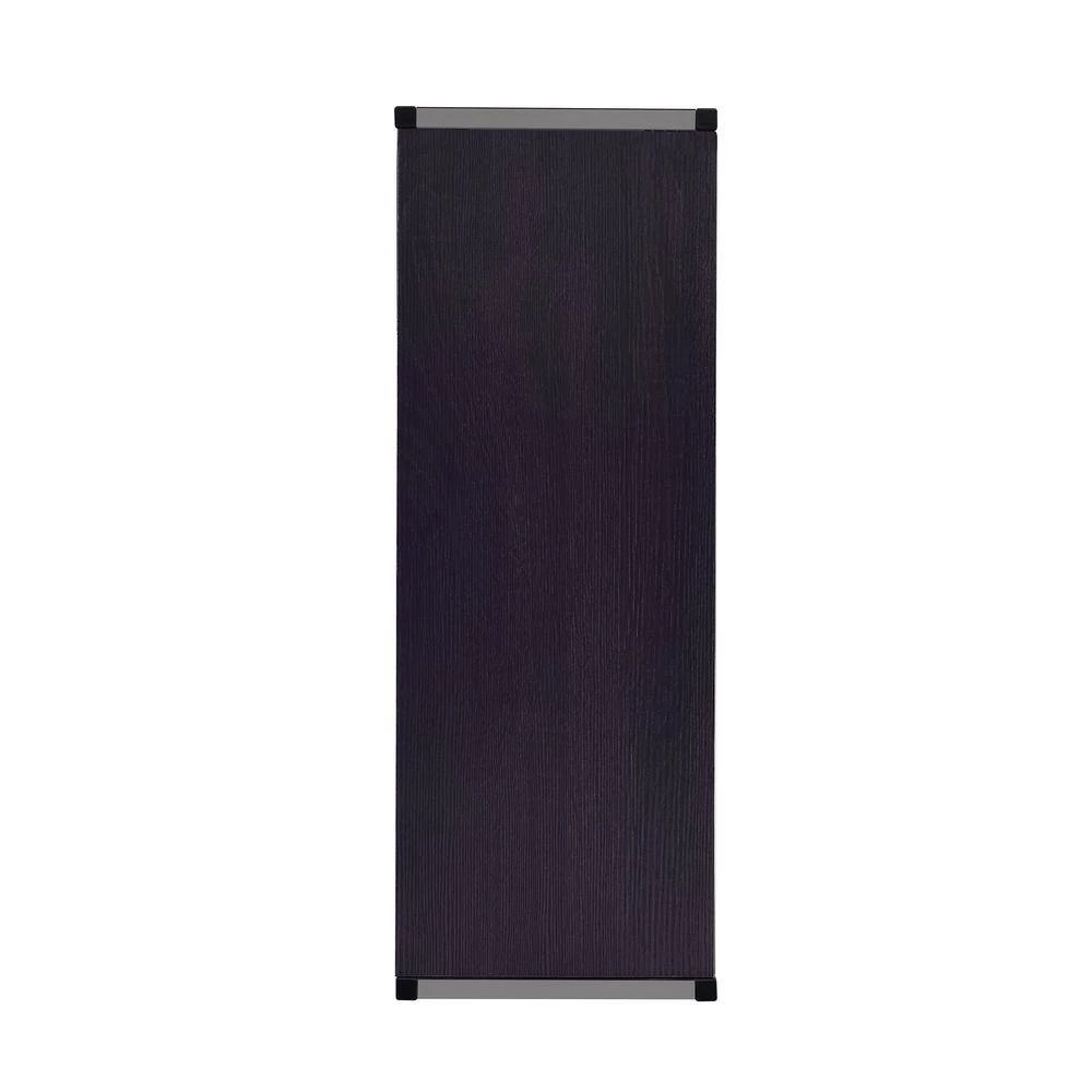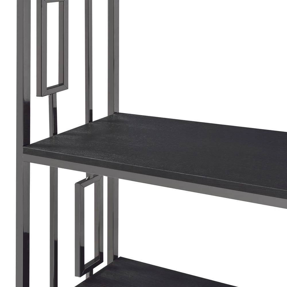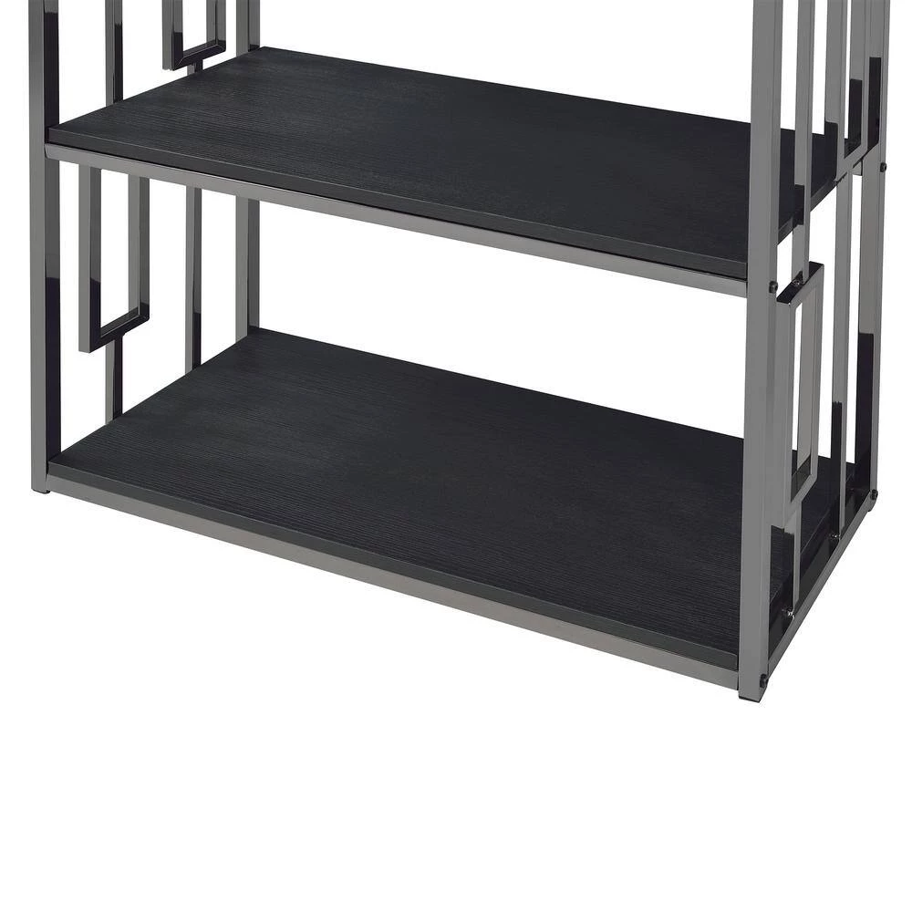 - Wooden shelves in sleek, black finish
