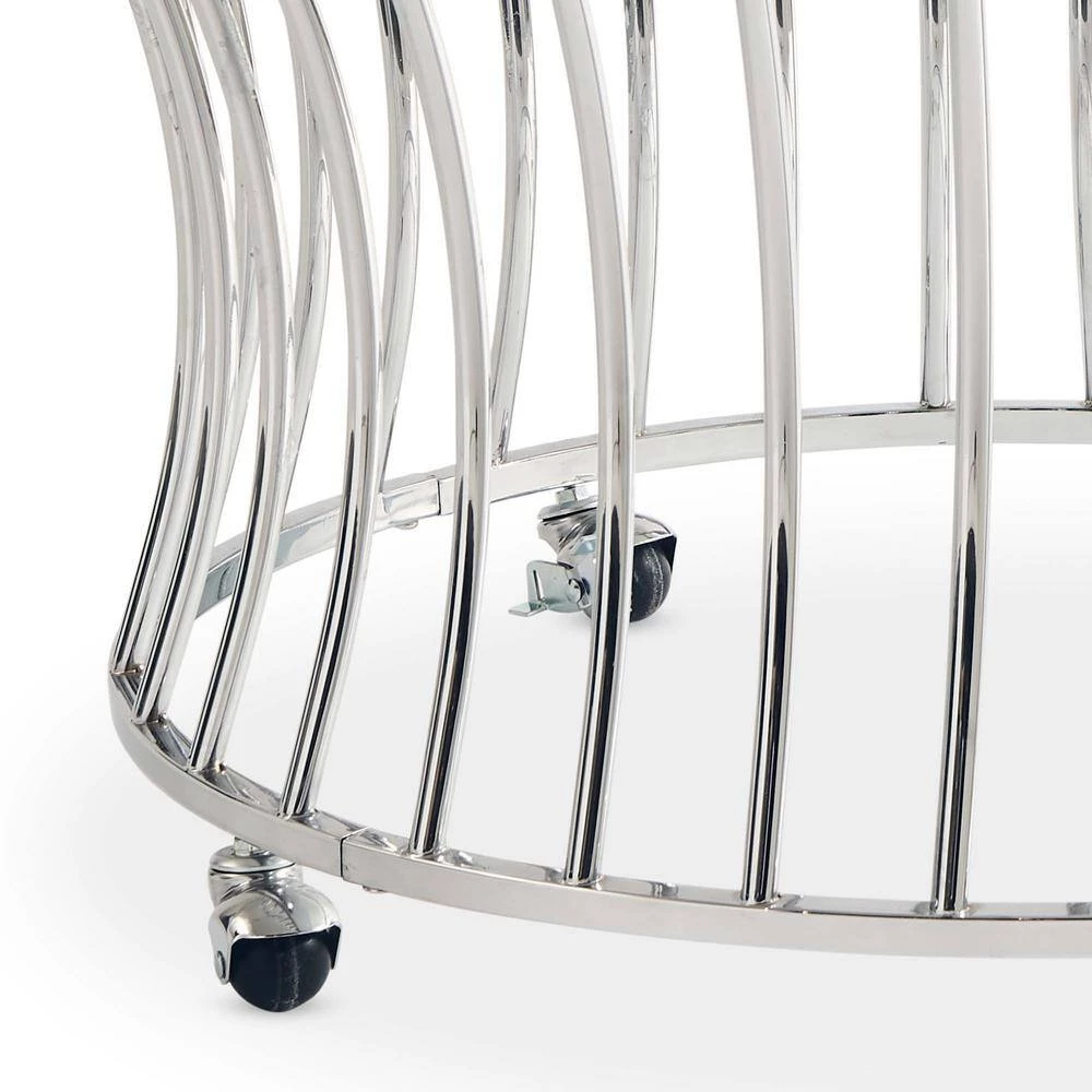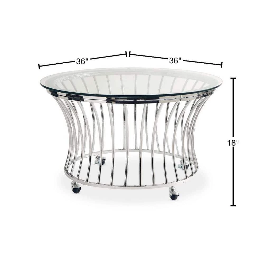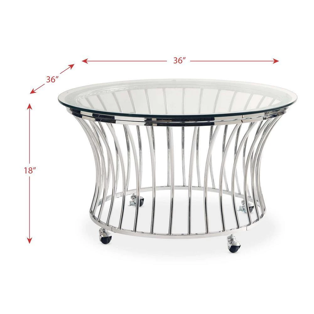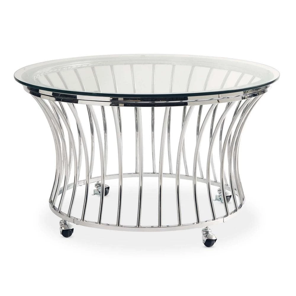 The Picket House Furnishings Astoria Round Coffee Table is the accent piece your living space has been missing. This coffee table features a modern glam design, instantly adding a dash of luxury to your home. This accent piece comes with removable casters, allowing you to move around this table with ease and to rearrange your space if needed. The glass table top pairs perfectly with the chrome , making this table easily transitional with any space. The intricate work on the base adds an element of drama and flair. Add this coffee table to your living space today for an ultra glam look.