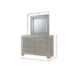 Glamour Youth 6-Drawer Dresser & Mirror w/ LED Light Set in Champagne by Picket House Furnishings