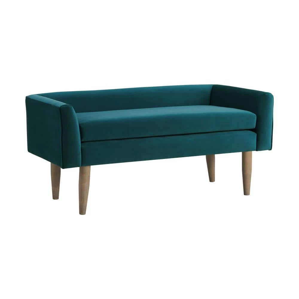 The Picket House Furnishings Bella Upholstered Bench will look great no matter where you display it. This bench can easily be used in the entry way of your home or even at the foot of the bed to help you get dressed in the mornings. The upholstery on this, is in a smooth, soft to the touch velvet that will instantly glam up your home. Multiple colors options range from transitional to bright pops of fashion. The white-washed wooden legs balance perfectly with the luxurious fabric, making this a staple in your home year after year.