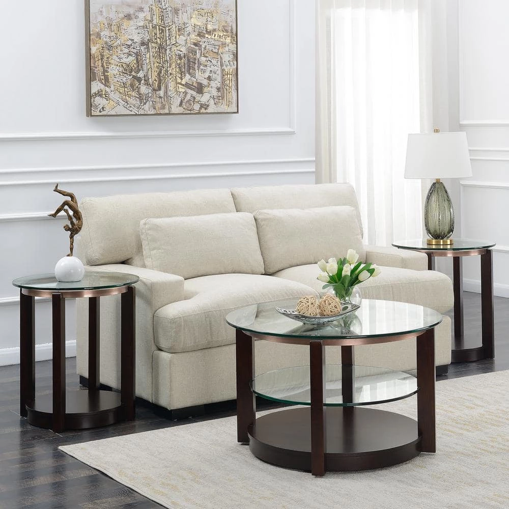 The Picket House Furnishings Benton 3PC Occasional Table Set is the perfect addition to your living room! This trio includes a coffee table and two end tables, and is ideal for small space living. The coffee table comes with removable casters, allowing you to move the table with ease any time you have company over or you just want to rearrange the place. The coffee table also has an interior shelf that lets you display any decor you have that needs a new spot. The tables have a timeless style, thanks to their glass table tops. The rich espresso finish is a classic and is easy to match with any existing decor and furnishings.