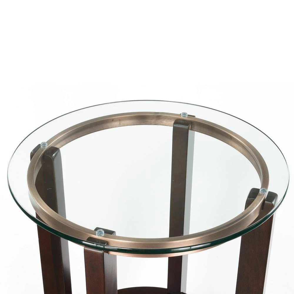 The Picket House Furnishings Benton Round End Table is the perfect addition to your living space. This end table is great for small space living, thanks to its tall and narrow design. The end table has a timeless style, with its glass table top. Display decor or stack books on the base of the table to make your space cozy and personal. The rich espresso is a classic and is easy to match with any existing decor and furnishings.