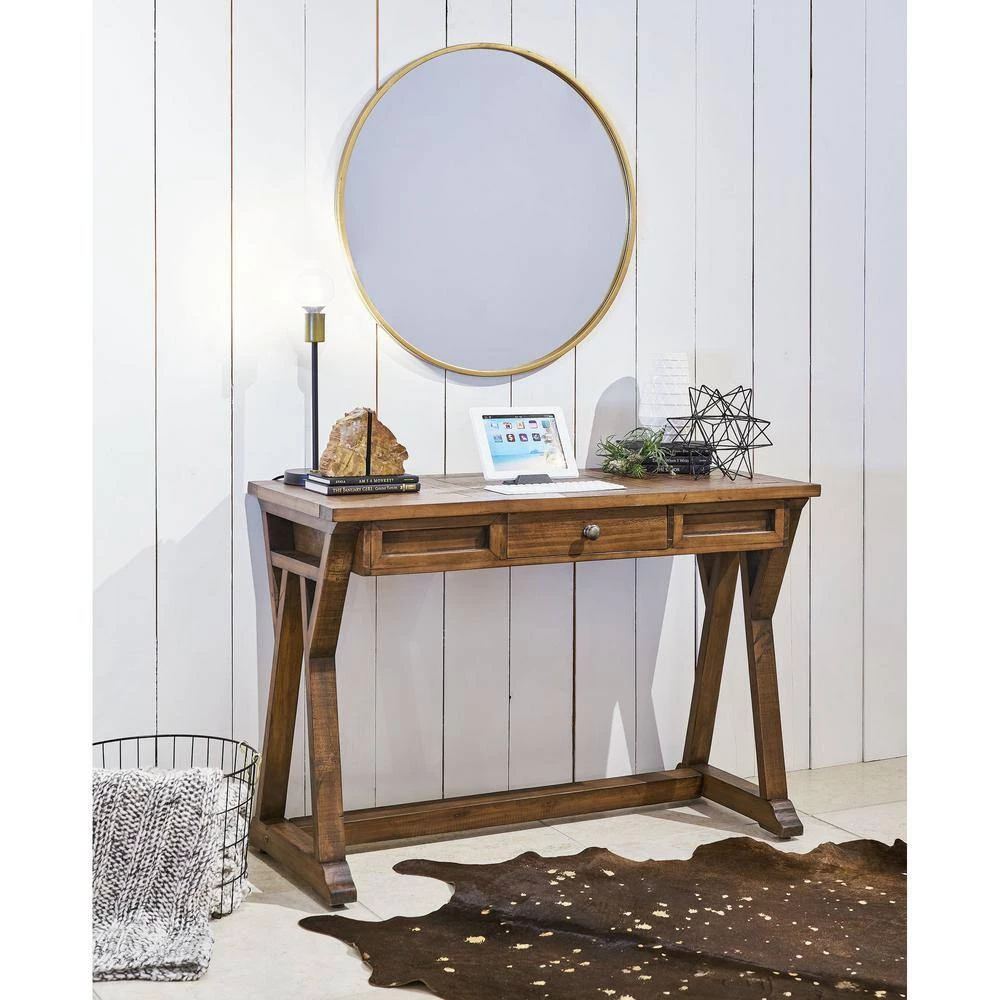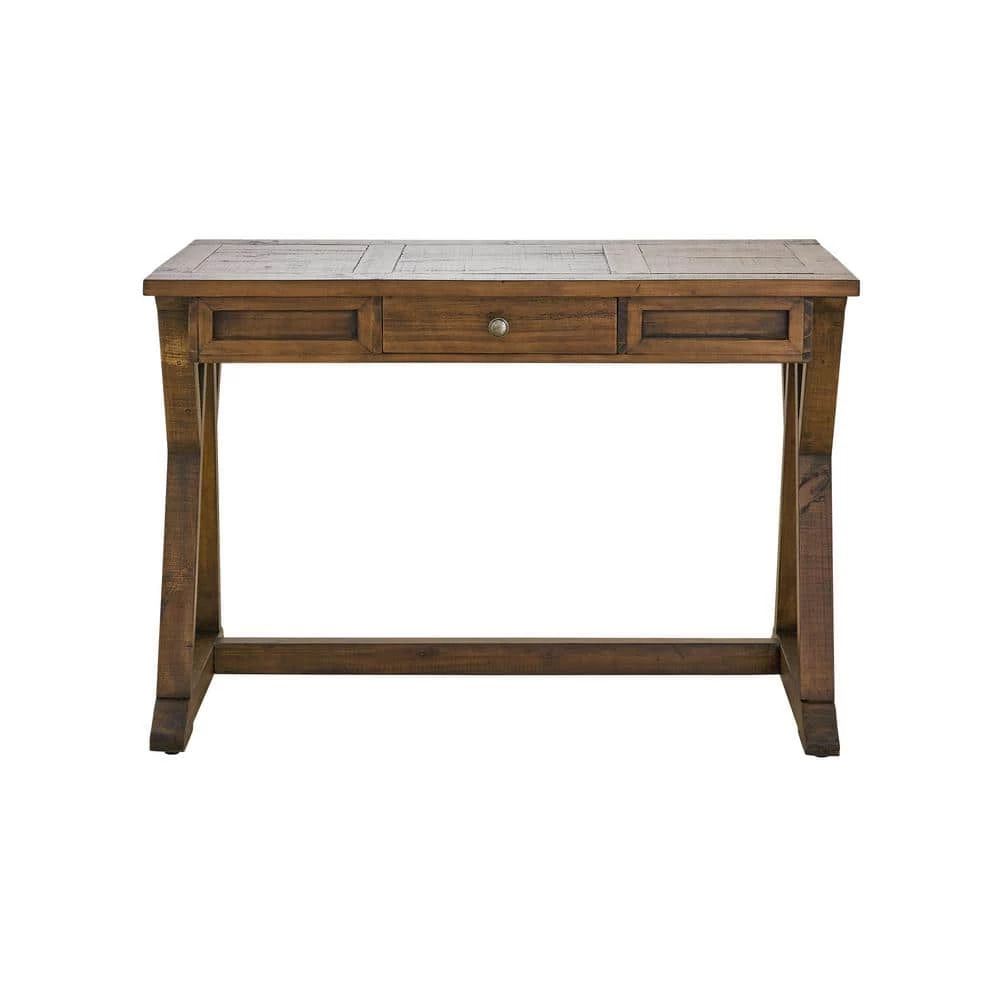 The Picket House Furnishings Brees Desk will give your room a rustic look and the perfect amount of warmth! Constructed with durable Brazilian Pinewood, this is a desk that will last you for years. Additionally, the versatile design allows it to be used as a desk, console, or dressing table. The spacious middle drawer makes it easy to store away any magazines, papers, or odds and ends that may be lying around. Each piece of wood is unique and will absorb the finishing process differently, therefore, the product you receive may vary from the pictures.