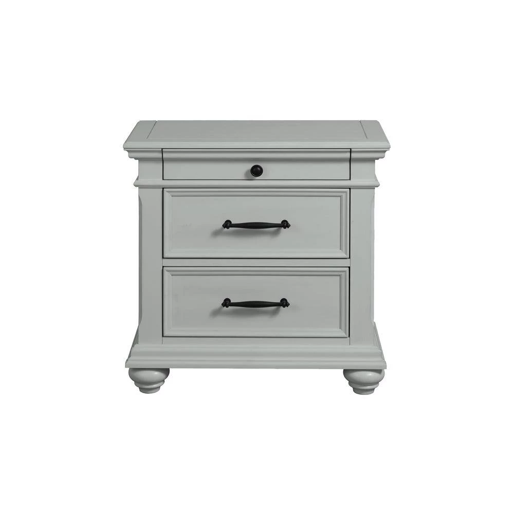 The Picket House Furnishings Brooks 3-Drawer Nightstand is going to look amazing in your bedroom. This bedside staple offers three spacious drawers for storage; while the top drawer features black, felt lining for you to easily store away your more delicate belongings. Another great thing about this nightstand is the two USB ports in the back that will keep your devices charged while you sleep. The dark metal drawer hardware beautifully pairs with the gray finish, making it a gorgeous combo that will never go out of style. Bevel edges and bun feet complete the look of this transitional-style chest. Add this piece to your home today for a look that you’ll enjoy day after day.