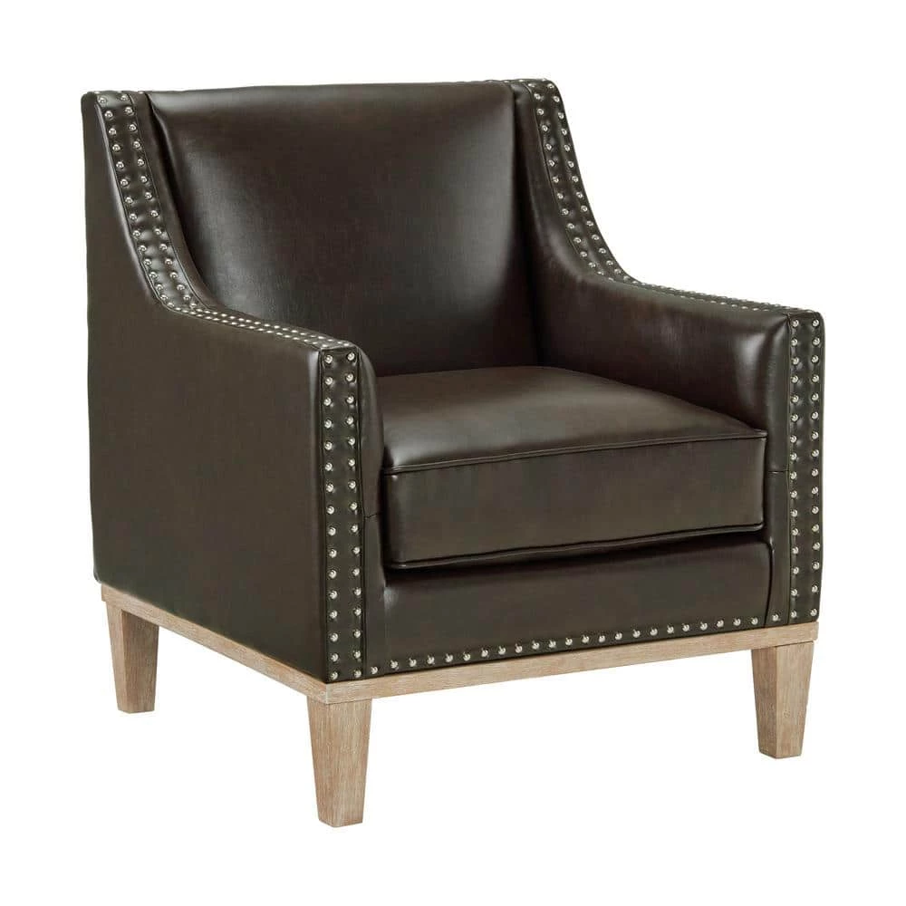 The Picket House Furnishings Aster Accent Chair is the perfect addition to any room. Constructed of pine and plywood for years of use and upholstered in faux leather fabric. It showcases a square shape with nail-head trim along the curved arms. With foam filling, the Aster accent chair provides all-day comfort. Add this accent chair to your home for a modern touch to any aesthetic.