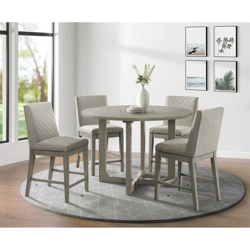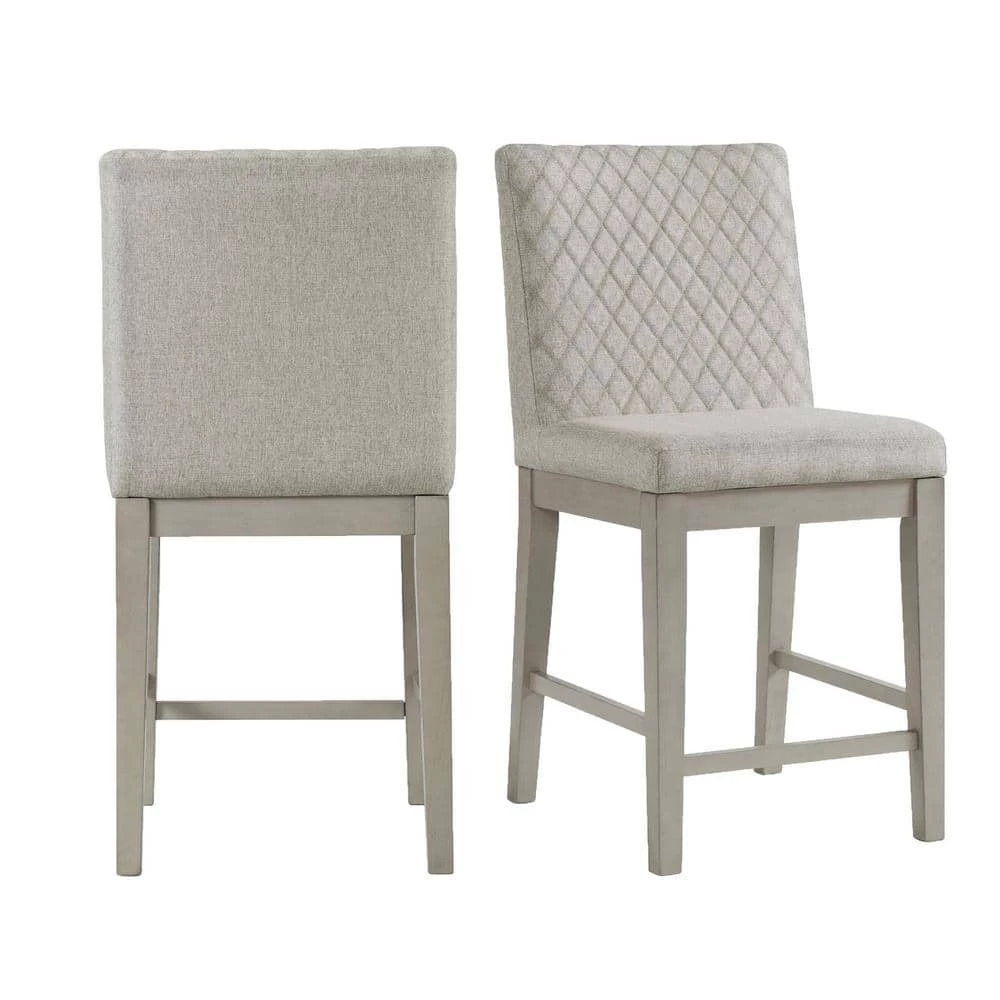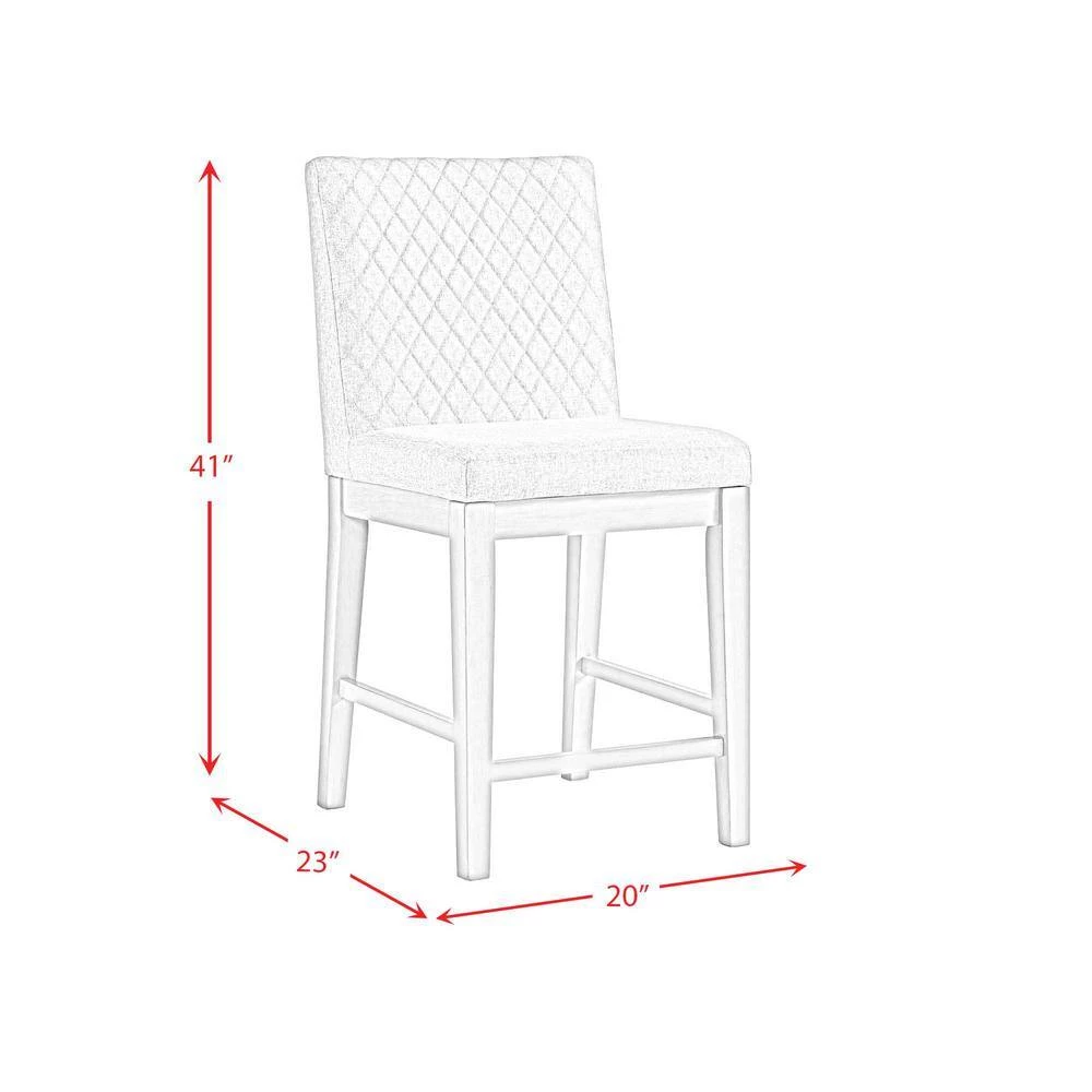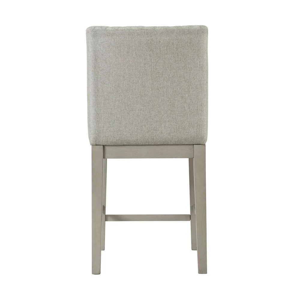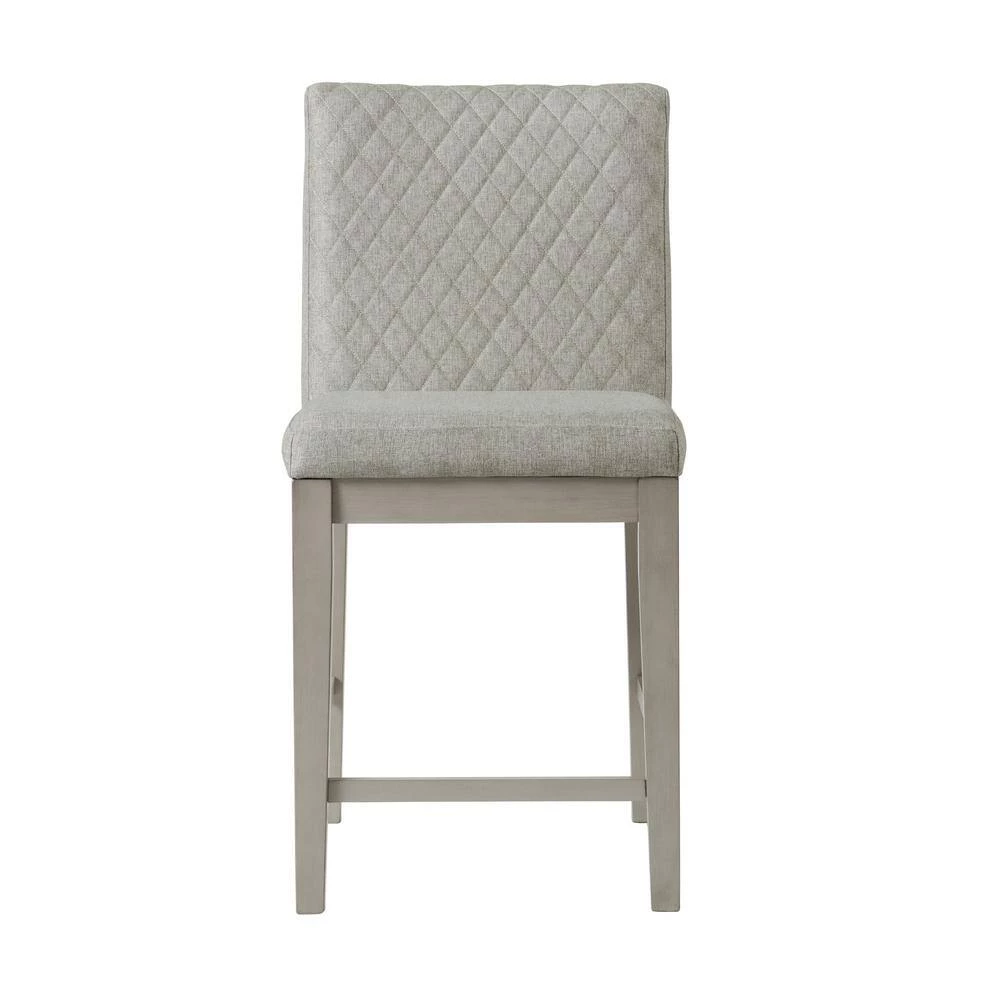 The Picket House Furnishings Calderon Counter Side Chair Set brings an inviting look into your dining room. Crafted using acacia veneer and manufactured woods in a inviting gray color. This side chair set displays upholstery at the back and seat with sturdy wooden legs. Showcases intricate diamond tufting at the back. The seat cushion features foam cushioning for added comfortability and support. Includes two side chairs that ship in one box. Weight capacity of one chair is 300 lbs. These chairs make the perfect addition for cottage style inspired living.