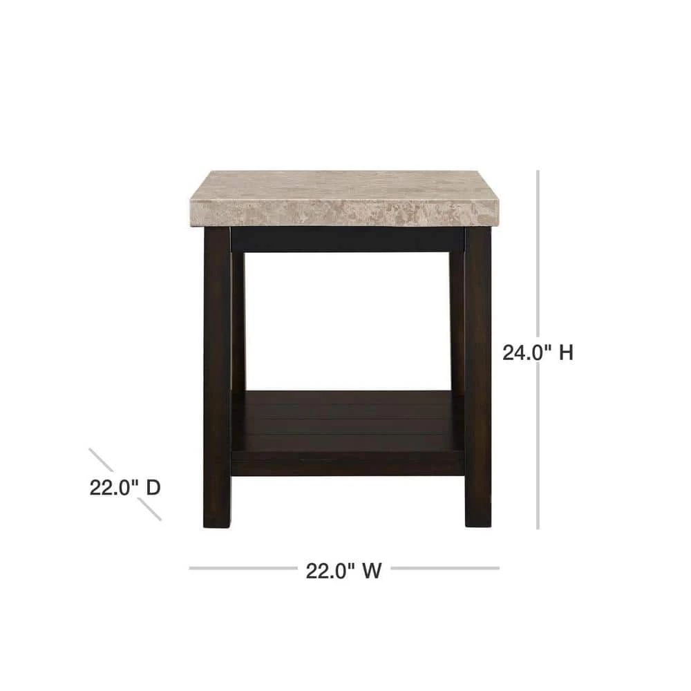 The Caleb End Table with Marble Top is the perfect addition to your home! This end table features a marble table top, making it the perfect piece for your living room. The base features a bottom shelf, allowing you to store away your favorite dcor or coffee table books. The base of the table is finished in a rich, espresso; making it the perfect transitional color for your home. The straight legs keep this contemporary design a staple in your home year after year.