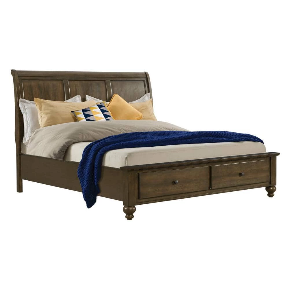 The Picket House Furnishings Channing King 2-Drawer Platform Storage Bed is the ideal bed for your bedroom! This bed brings the style and the functionality. Free up your linen closet and move those extra bed linens to the storage drawers in the footboard. This bed comes with two spacious drawers in the footboard for any extra storage you might need. The panel headboard features a trio panel design, showcasing the smokey walnut finish beautifully. Classic features are present throughout, from bevel edges to bun feet. Throw out your box spring because you won’t need it with this platform storage bed.