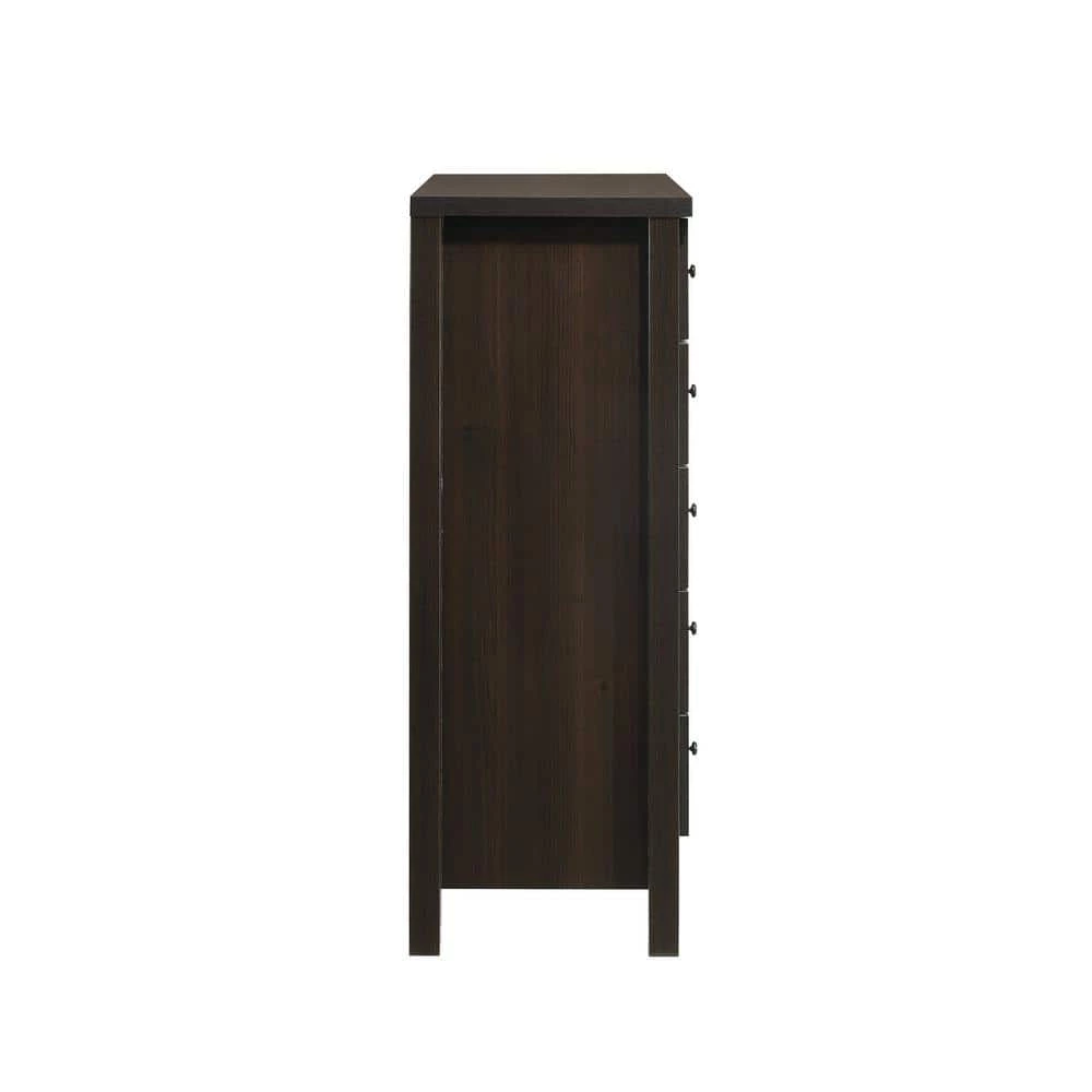 Picket House Furnishings Cian 5-Drawer Chest is effortless in style and convenient in storage. Built with manufactured woods and paper veneers, this chest sports clean lines and straight legs. Features five drawers for storage, perfect for saving space in your bedroom. Dust proofing at bottom drawers for keeping your intricate clothing safe. The transitional style complements any bedroom space.