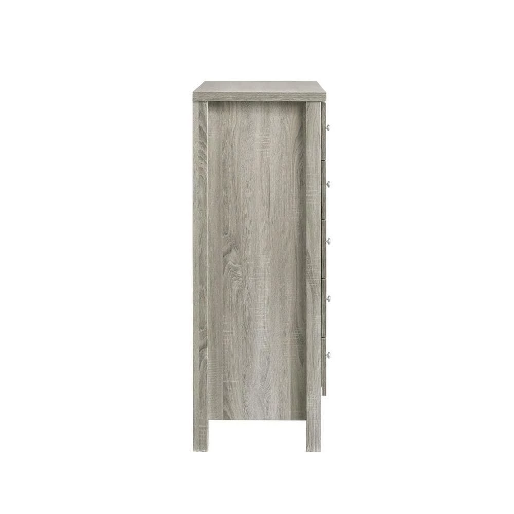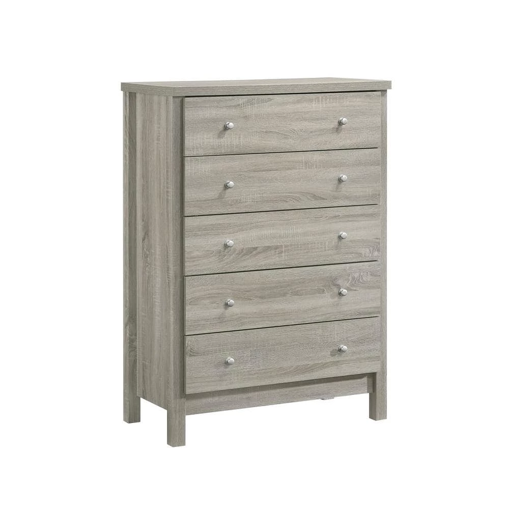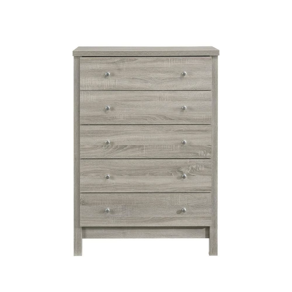 Picket House Furnishings Cian 5-Drawer Chest is effortless in style and convenient in storage. Built with manufactured woods and paper veneers, this chest sports clean lines and straight legs. Features five drawers for storage, perfect for saving space in your bedroom. Dust proofing at bottom drawers for keeping your intricate clothing safe. The transitional style complements any bedroom space.