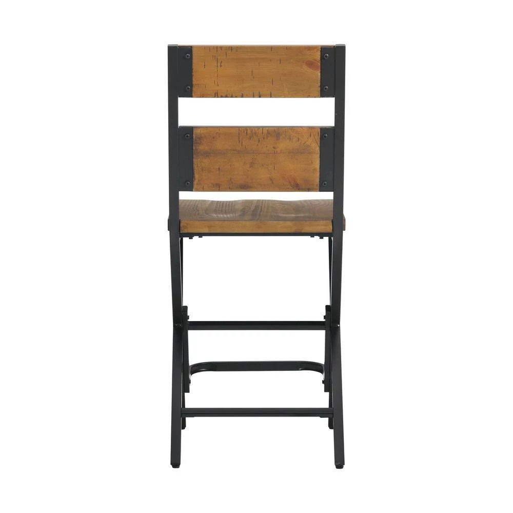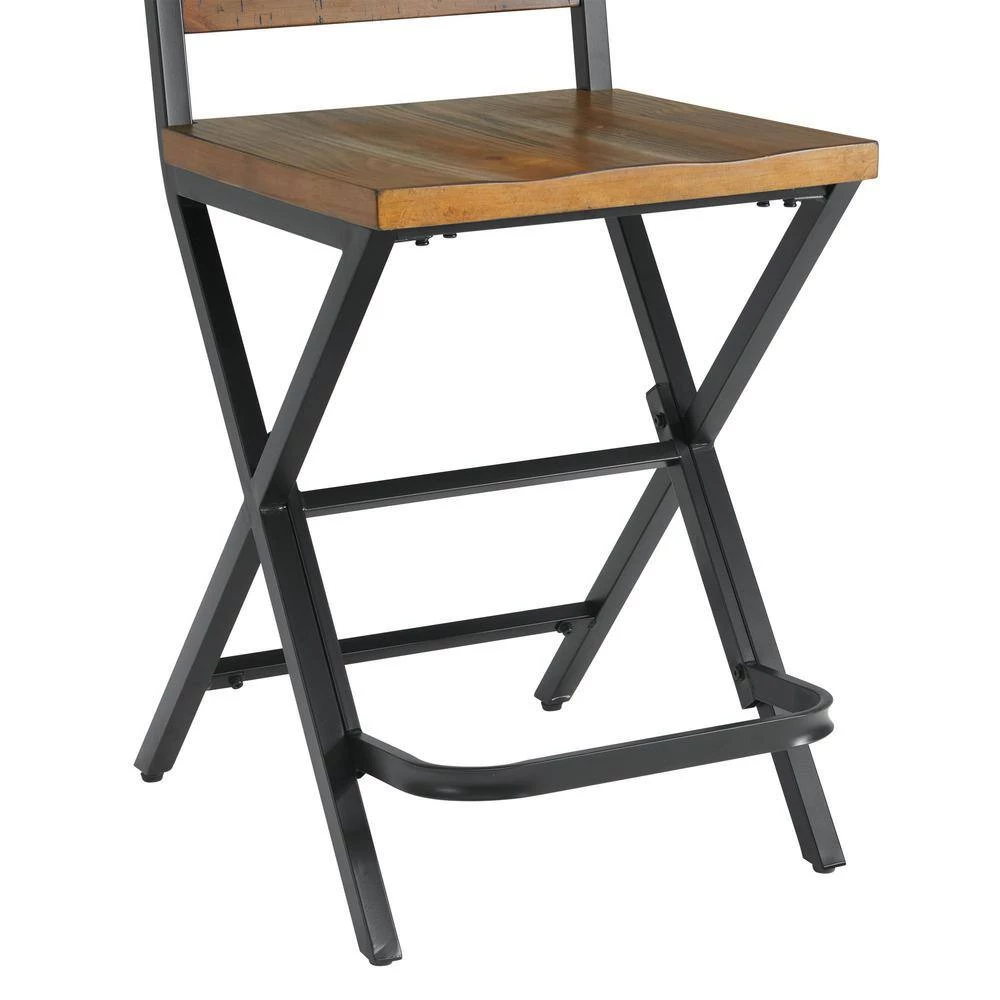 The Picket House Furnishings Colt Counter Side Chair Set shapes up your dining space with its industrial and refined rustic design. Includes two chairs. The chair set showcases natural wood grain, distressing, and live edge styling with a rich amber brown color. The black metal frame and sophisticated texture of the chair creates a union of style. Perfect addition to a modern space looking for an industrial touch.
