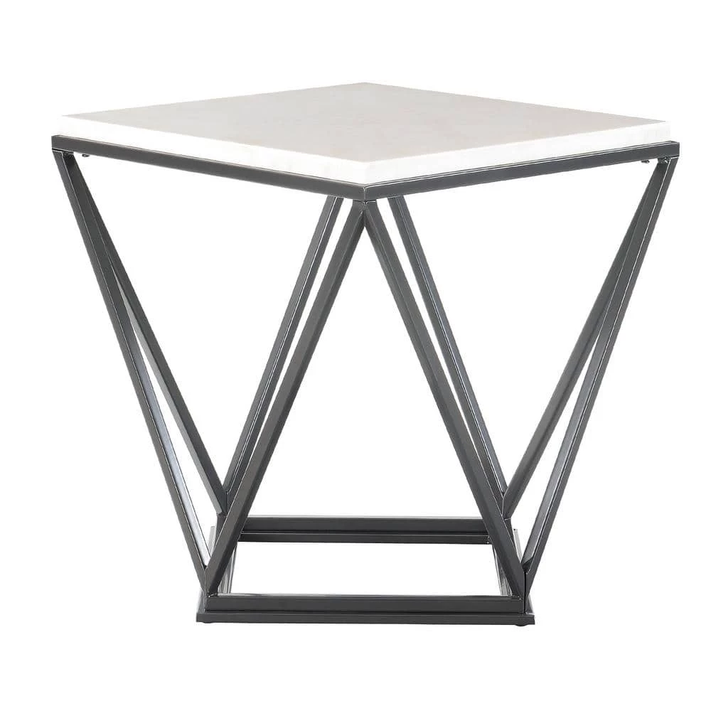 The Picket House Furnishings Conner Square End Table is the perfect addition to your home! This end table features a white marble table top that pairs beautifully with the powder coated black base. One of the cool features about this table is the funky base, making it a true standout in your home. The sleek, clean lines will make this a staple in your home year after year; even as your style changes.