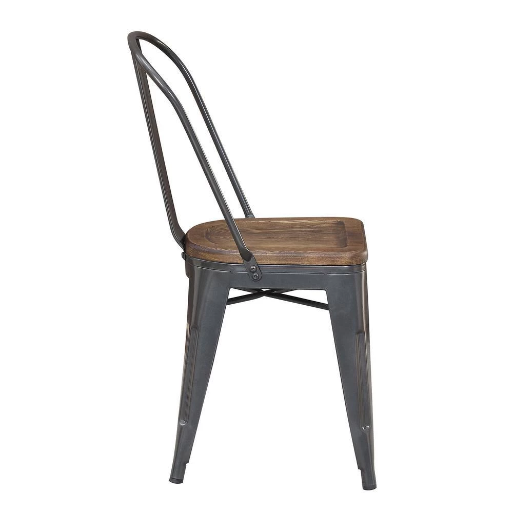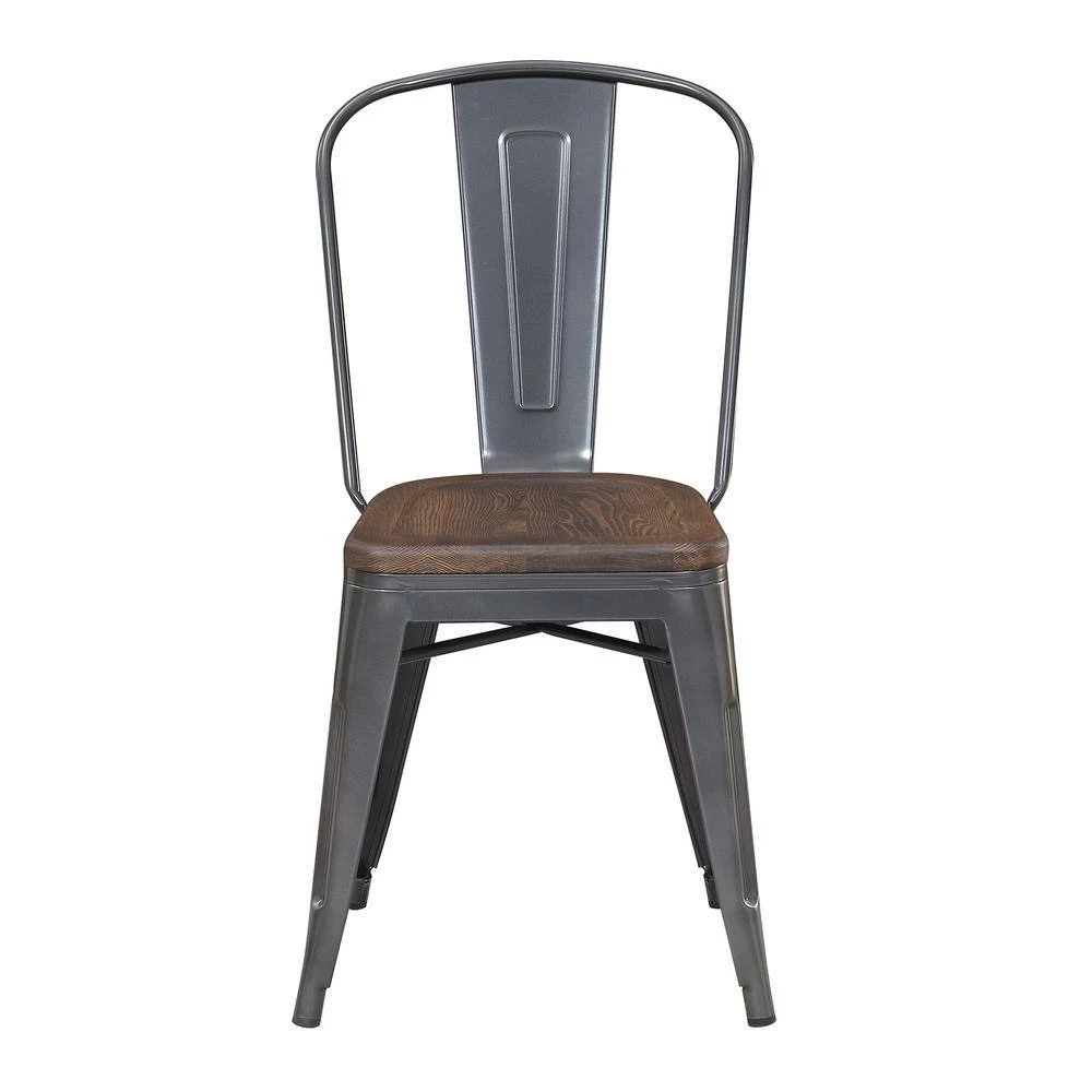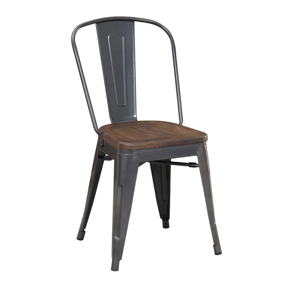 The Picket House Furnishings Davis Metal Chair Set is the ultimate addition to your kitchen. This chair set comes with 2-chairs. The metal frame is powder coated in a transitional gray color, while the wooden seat is a rich walnut. The arched back adds extra flair with a single panel to support your back. The wooden seat features woodgrain details, making these chairs stand out. The industrial design makes it easy to pair with your home, thanks to its clean and sleek lines.