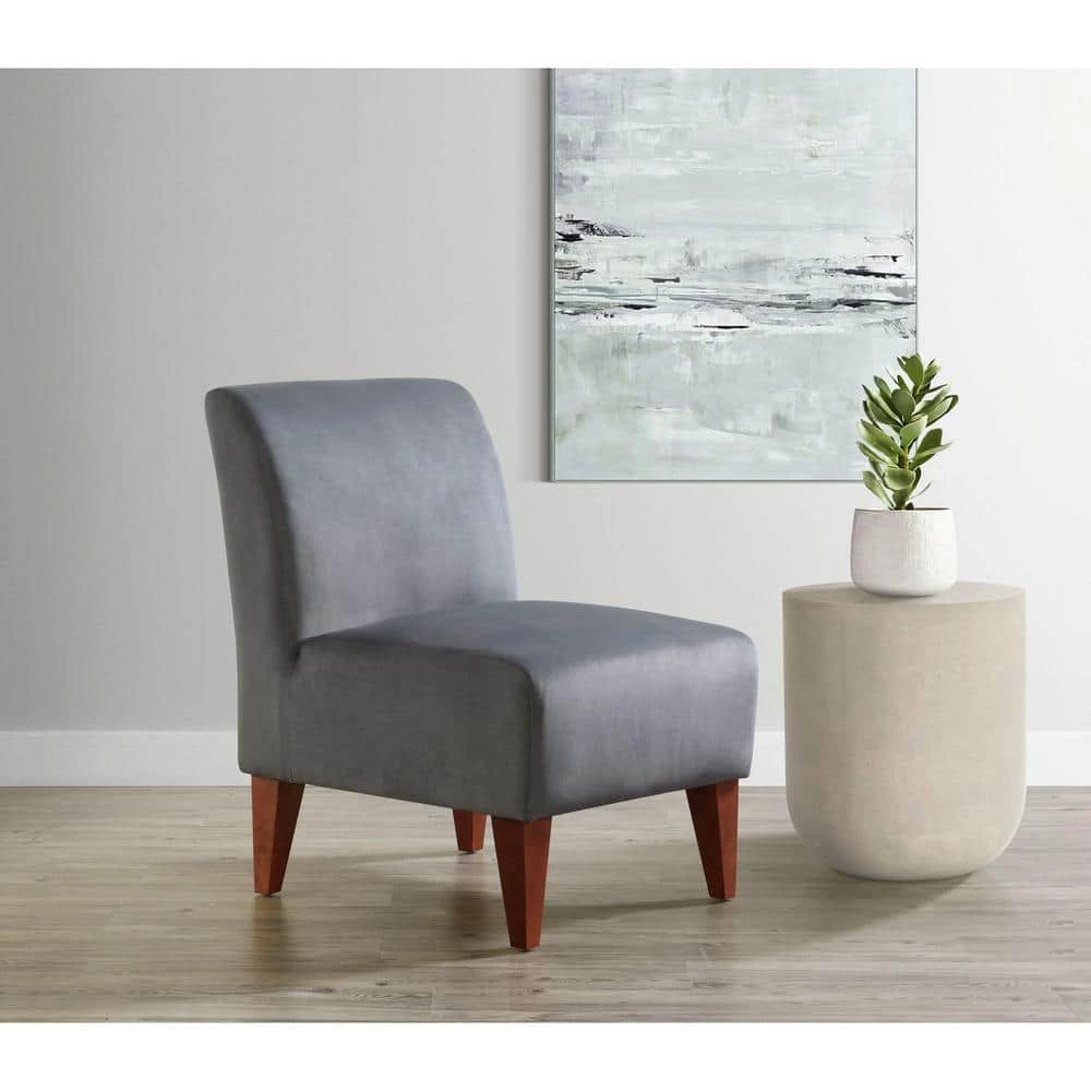 The Picket House Furnishings Elizabeth Accent Slipper Chair is a charming slipper chair covered with a stylish fabric upholstery. Its chic armless design sits low to the ground, it the perfect compliment to a dressing room or a seating area in your home. The soft, velvet fabric give you a look of that modern glam style that will instantly make your space feel chic. From neutral to vibrant, this chair comes in different colors to fit any type of personality. Add this accent chair to your home today for a look that you will love to come home to, day after day.