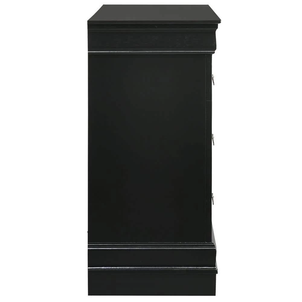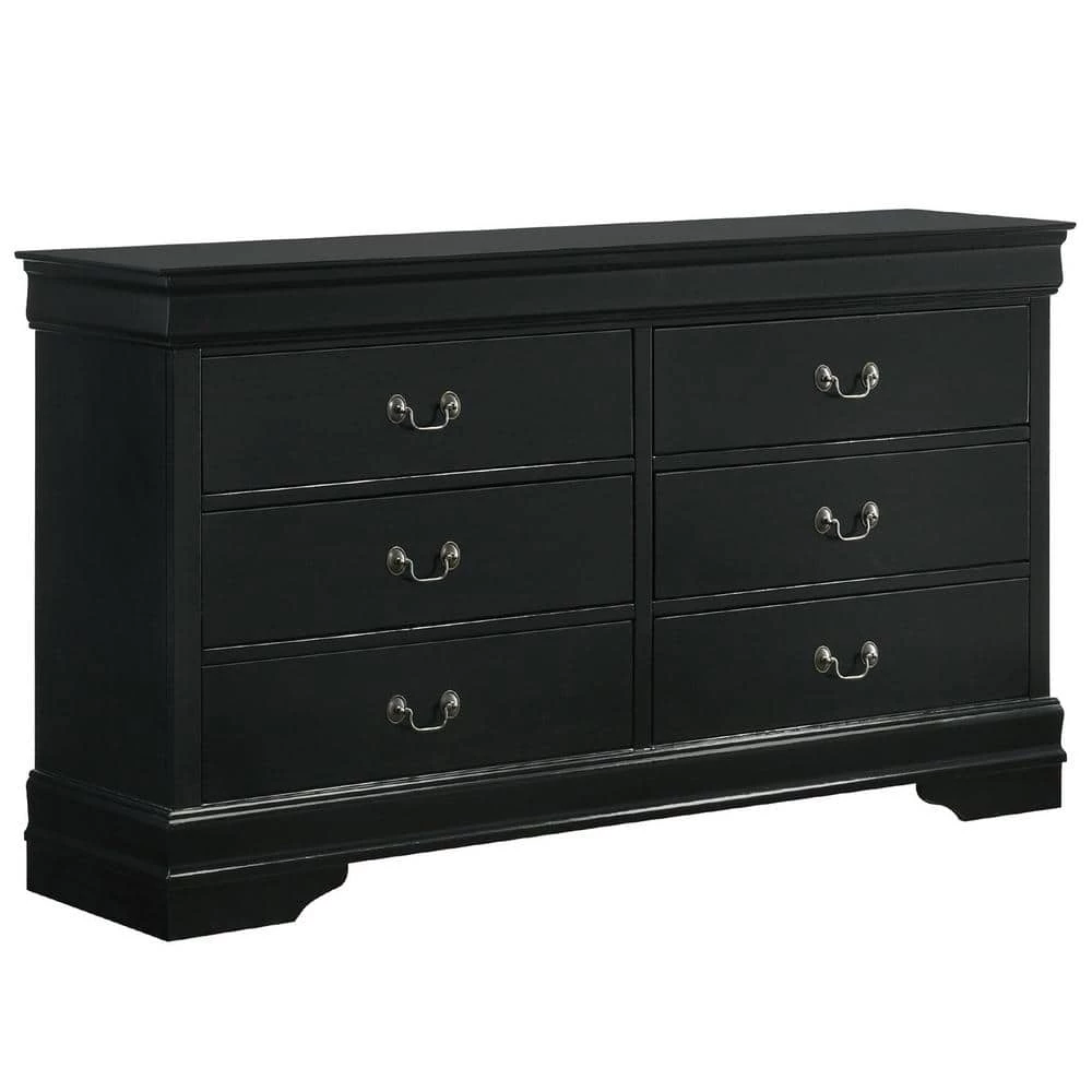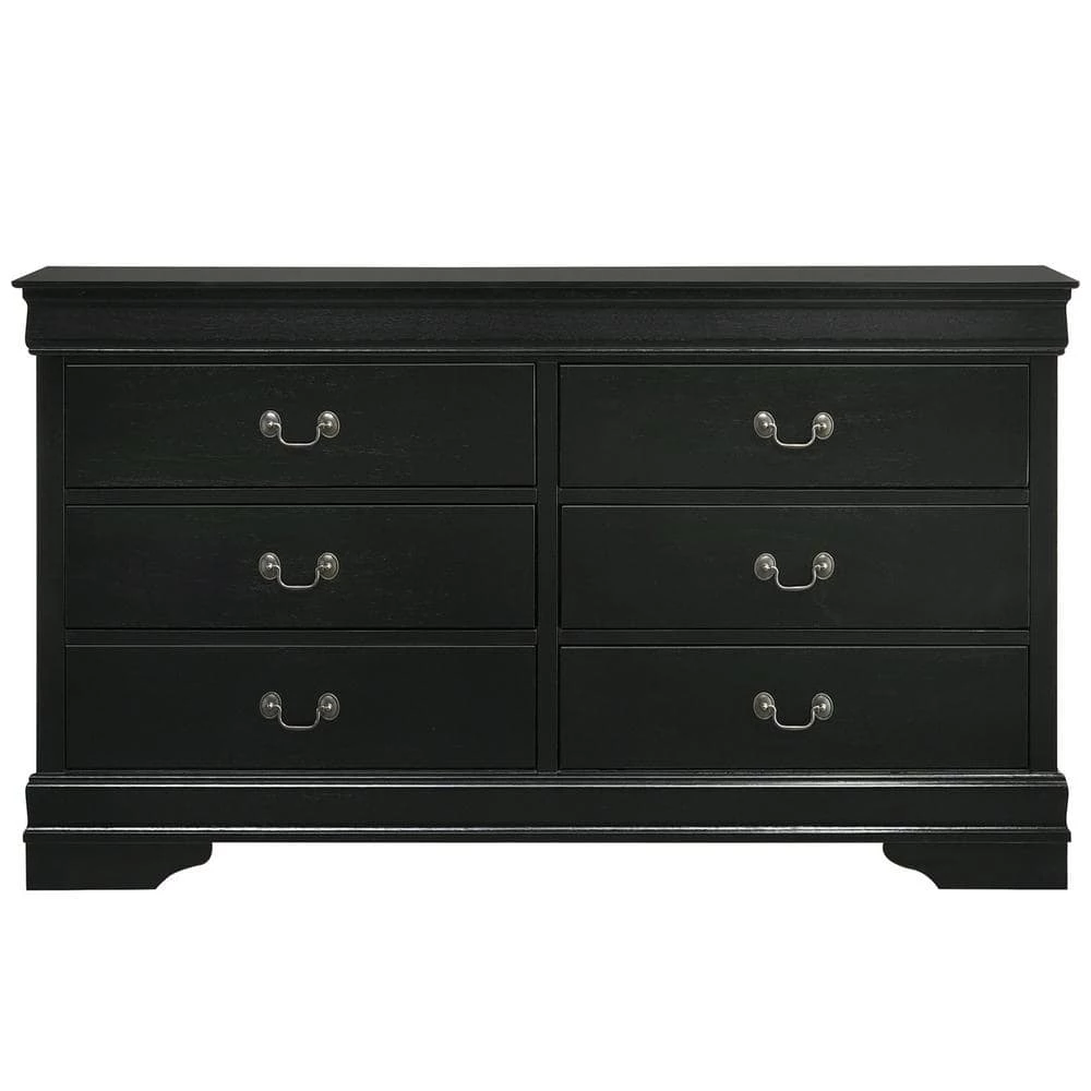The Picket House Furnishings Ellington 6-Drawer Dresser takes on the Louis style with it’s simplicity . Constructed of sturdy rubberwood and manufactured woods and finished in sleek black. Features six generous drawers for storing your clothing. The drawers are complete with antique metal handles. Dustproof bottoms protect your favorite clothing from dust bunnies.