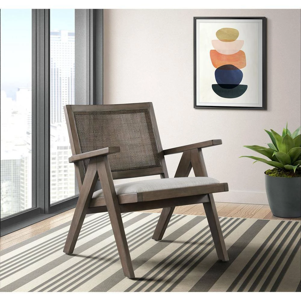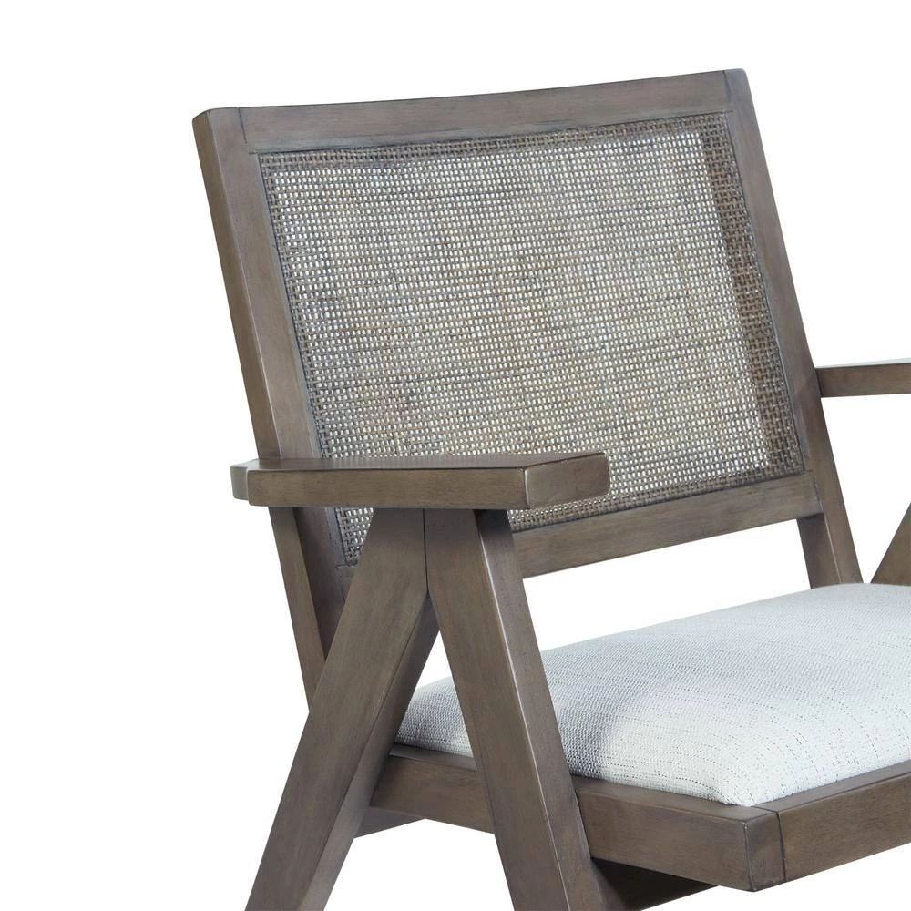 Picket House Furnishings Chaucer Lounge Chair is defined by its natural materials and structure with homage to mid-century style. This chair is crafted with a natural exposed wood frame and natural rattan at seat back. The cream tweed upholstery at the seat adds the element of texture and timeless appeal. Features bold, square arms for convenient arm rest. With a slightly tilted silhouette, the Chaucer embodies refined relaxation.