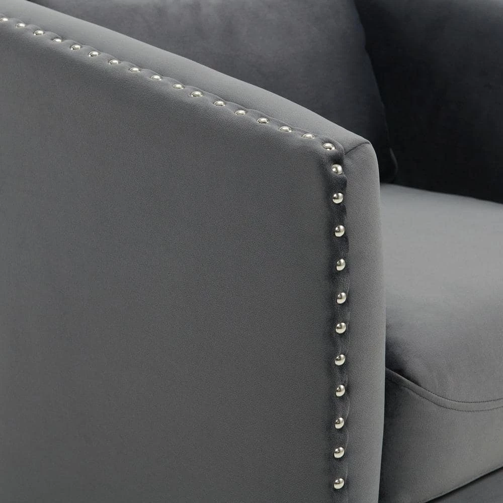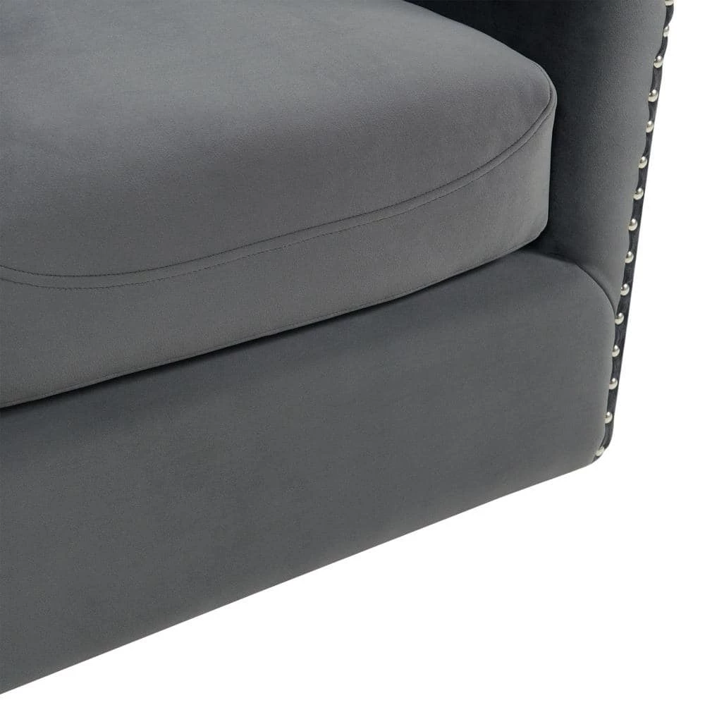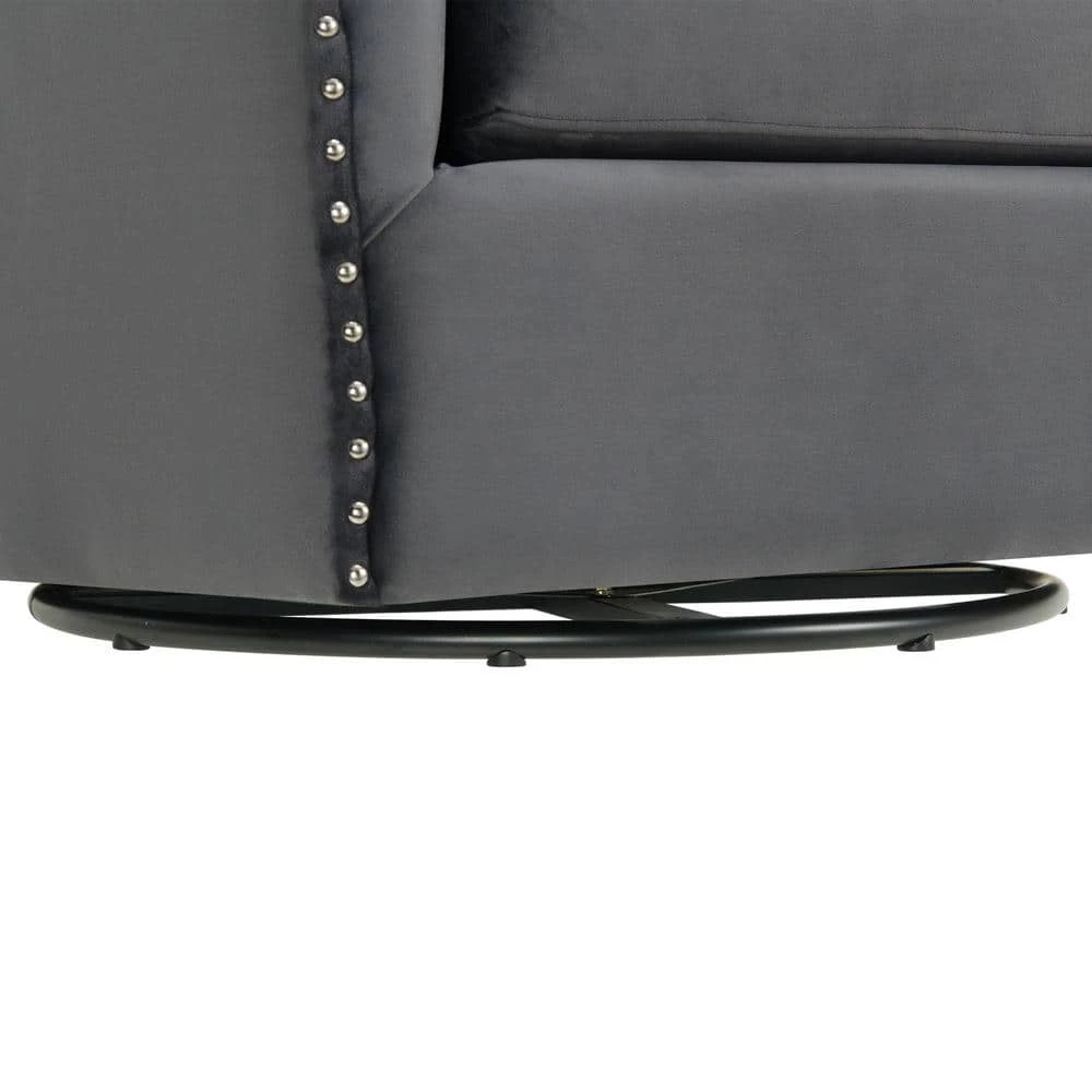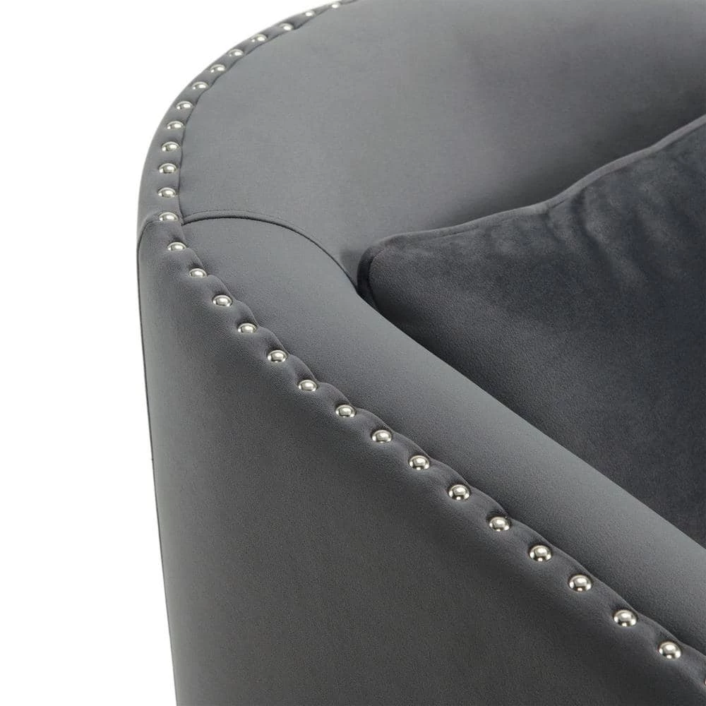 The Picket House Furnishings Zola Swivel Accent Chair is going to be a knockout in your home! This chair features a thick, seat cushion that is super comfy and will have you never wanting to get out of this chair. Chrome, nail head trim is outlined along the edges of the chair, instantly adding extra flair to this already stylish piece. The chair also comes with one pillow that matches the transitional colors that the chair comes in. Add this swivel accent piece to your home today for a look that will never go out of style!