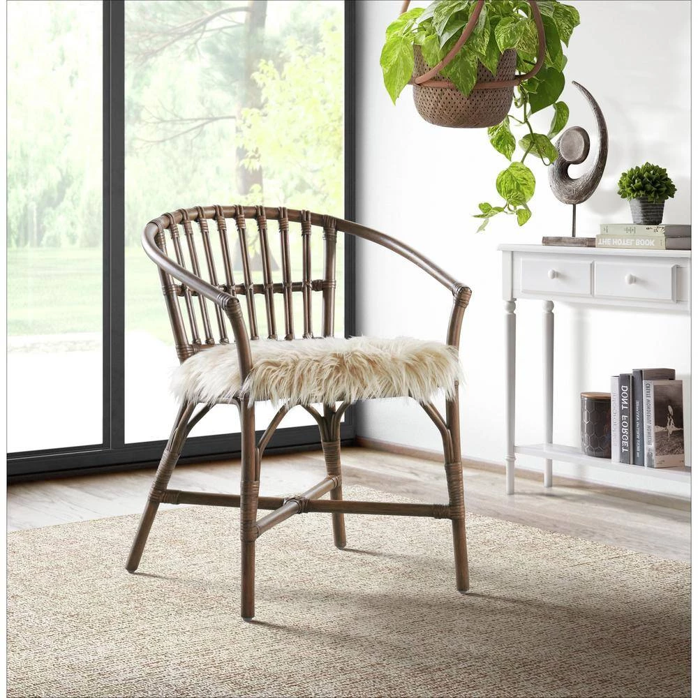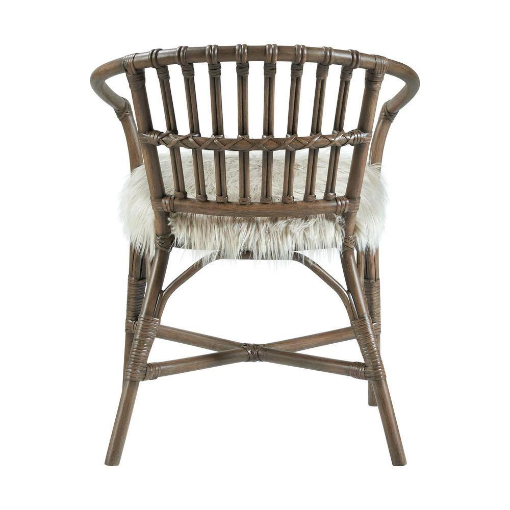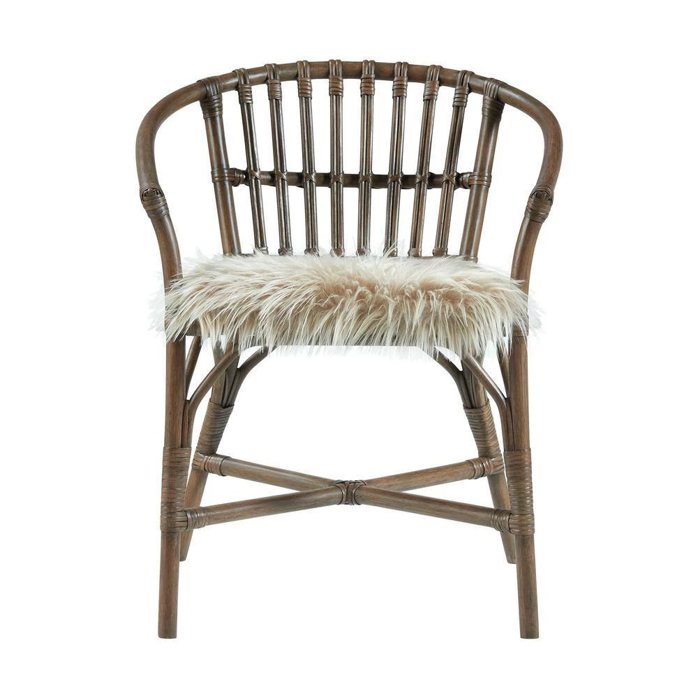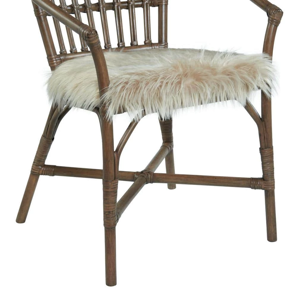 Picket House Furnishings Maddie Arm Chair gives the classic windsor chair a stylish update. Maddie delivers a Scandinavian vibe with its airy design, classic slatted back, and attached arms. Ergonomically curved and sloped backward for all day lounging and maximum comfort. The fuzzy wool cushion is the perfect final touch, adding an eccentric textural element to the overall design. This chair fits into any home aesthetic providing a chic, mid-century look ideal for your home office or living room.