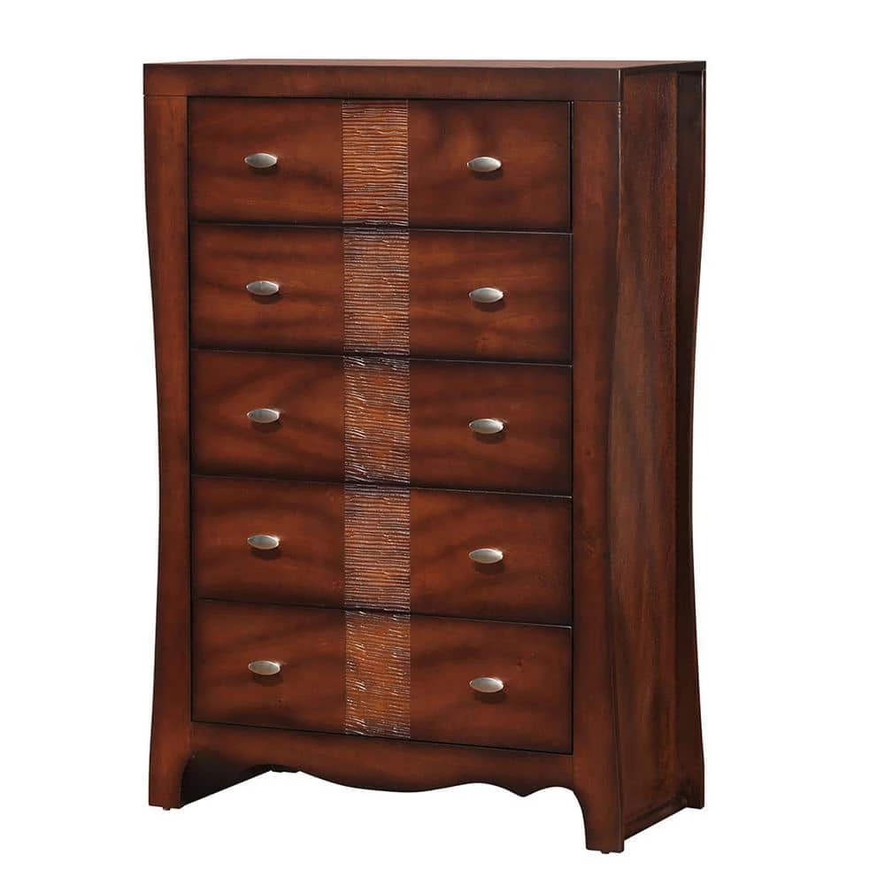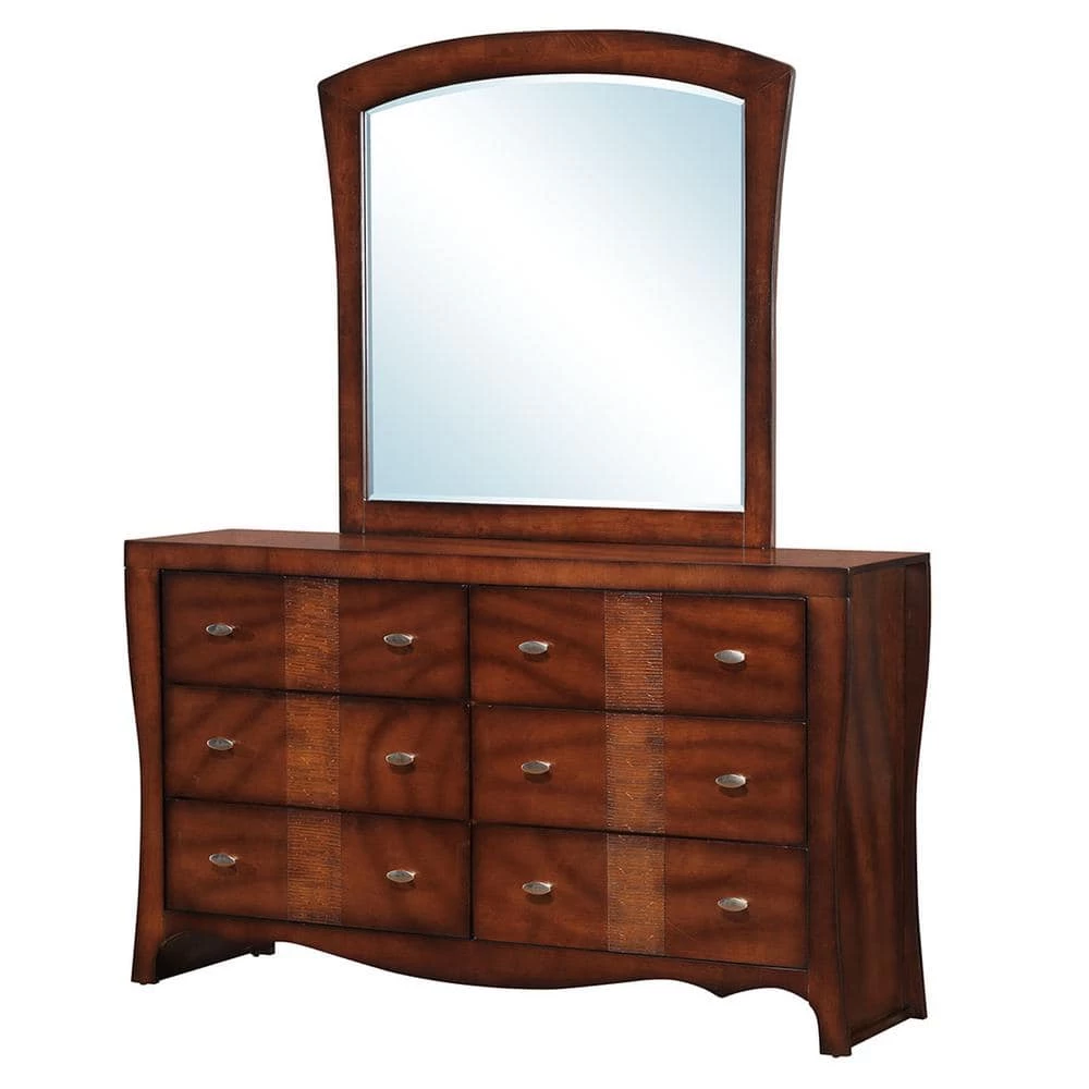 - Set includes: bed, dresser, mirror, chest and 2-nightstands
