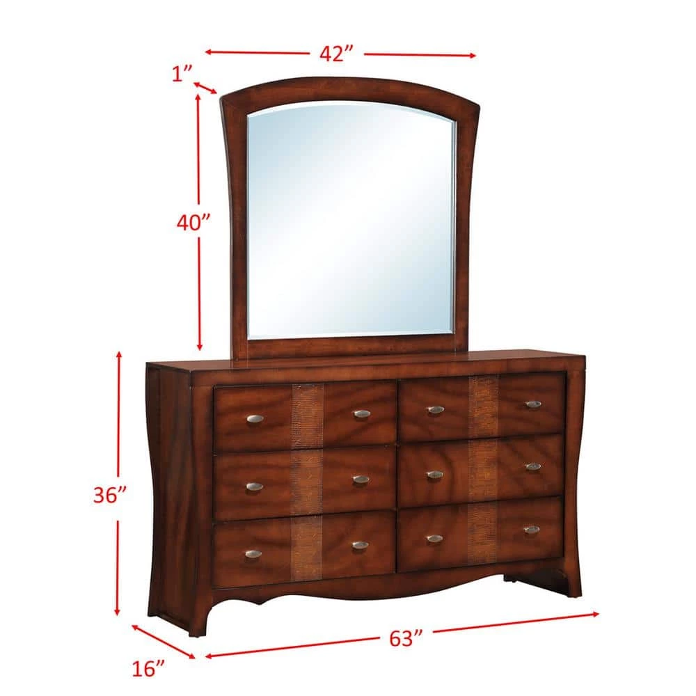 - Dresser and mirror: 17 in. D x 63 in. W x 76 in. H