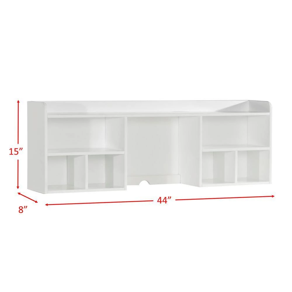 The Picket House Furnishings Desk and Hutch Set features a crisp white finish, delicate moldings, and crystal-like knobs for a touch of sparkle. With two small drawers for storing supplies and plenty of shelving in various sizes. Your child sure to stay organized and inspired with this beautiful set.