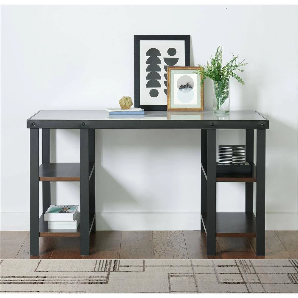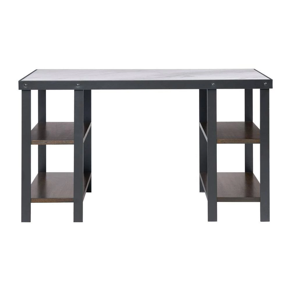 The Picket House Furnishings Juno Desk brings style and simplicity to your home office. Carefully created with beautiful faux marble top and metal base for years of use. It features four open shelves ideal for storing your favorite books and office essentials! This industrial style desk is perfect for your office. Ships in one box for easy handling!