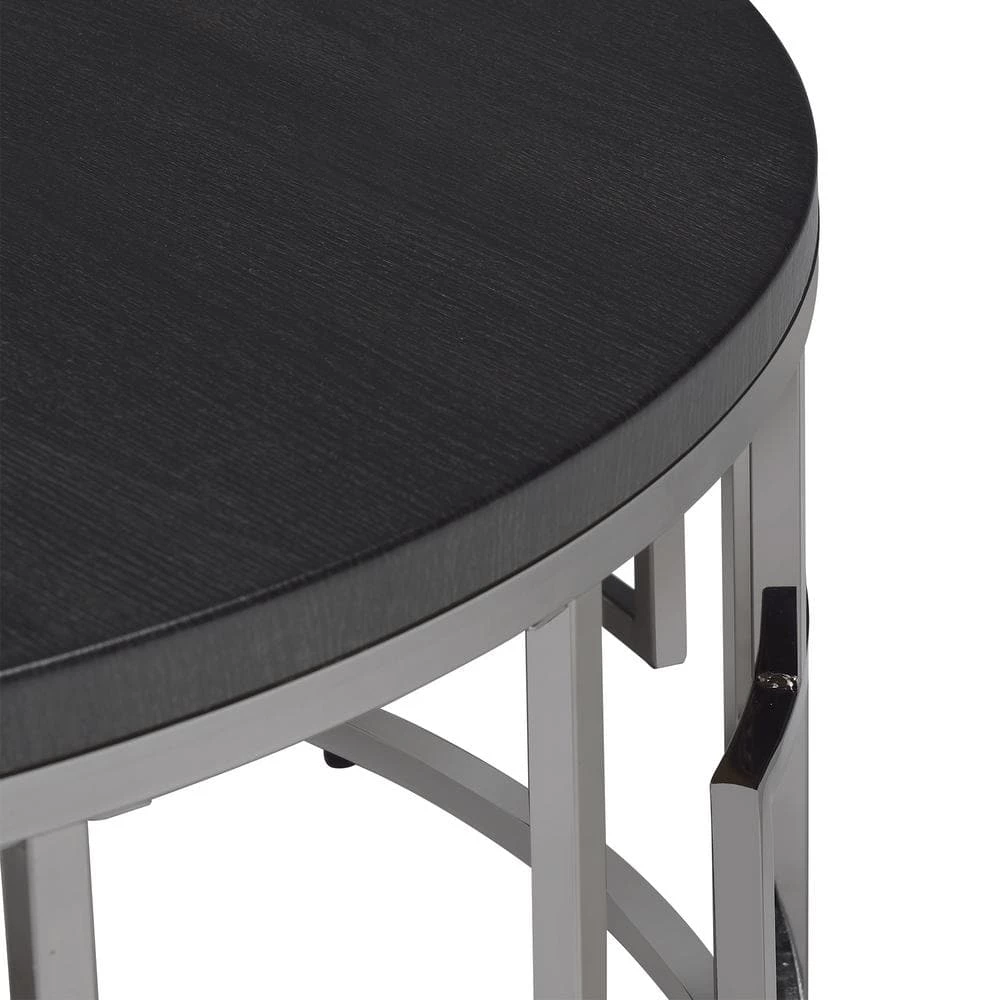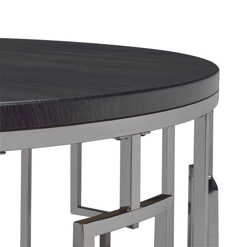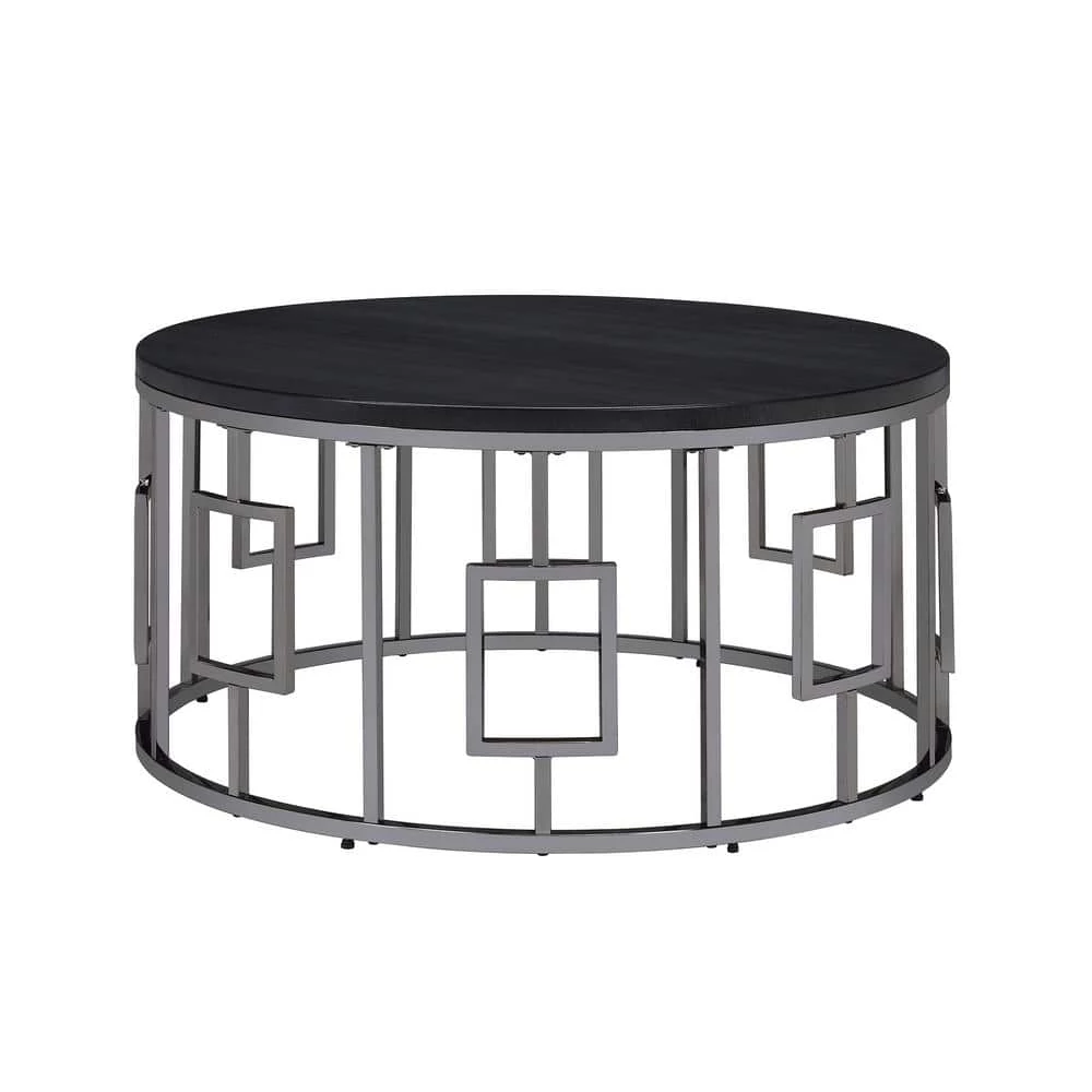 Kendall 36 in. Chrome/Black Medium Round Wood Coffee Table by Picket House Furnishings