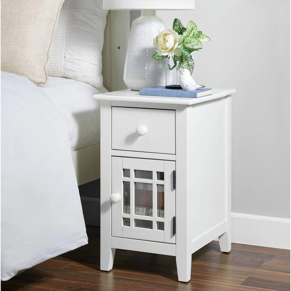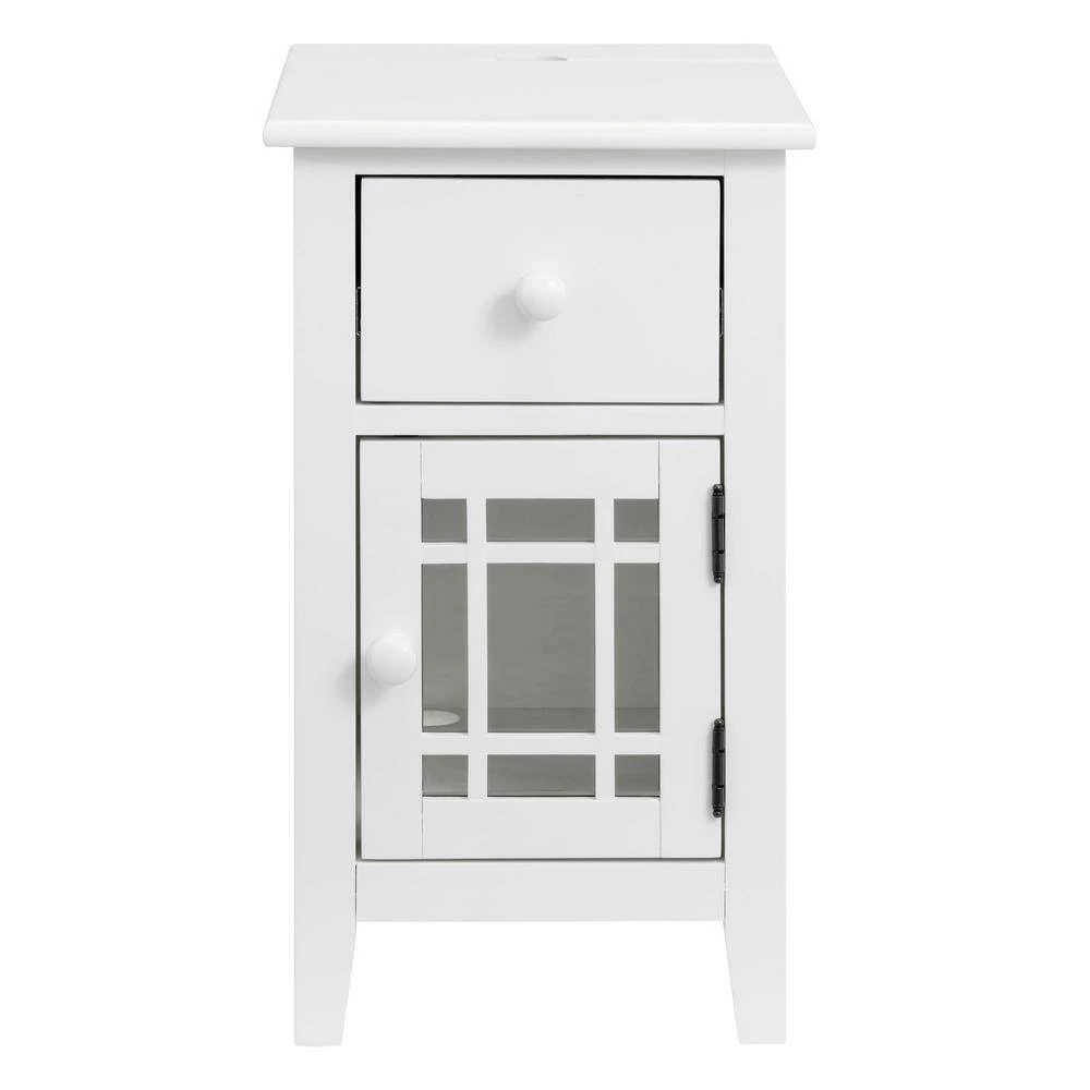 The Picket House Furnishings Kian Side Table is the right fit for anywhere in your home. Designed with character and functionality. Crafted of sturdy solid wood and MDF. This side table includes one spacious drawer, hidden storage under lift top, and tempered glass cabinet door. Also includes a built-in USB outlet conveniently placed for keeping your devices charged at all times. Add a transitional touch to your home with the Kian Side Table.