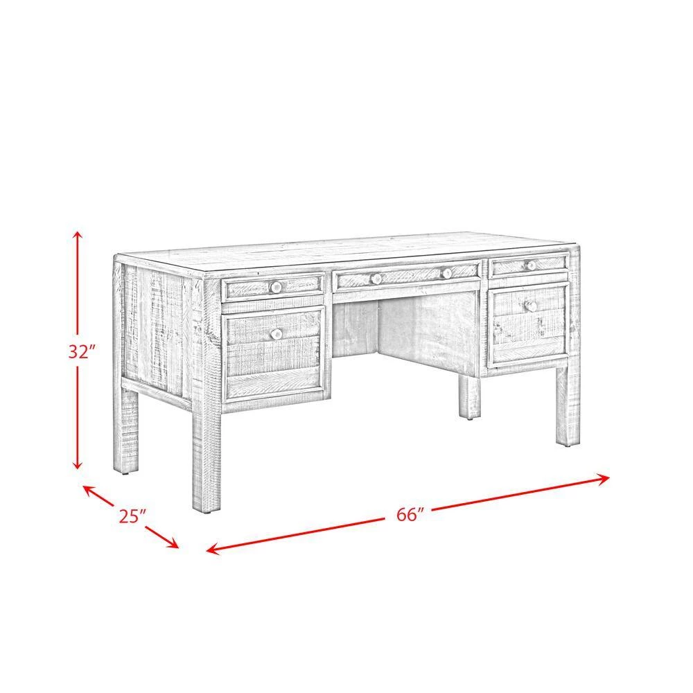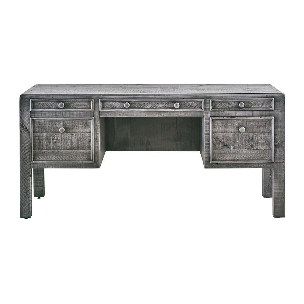 The Picket House Furnishings Lenox Desk in Industrial Grey allows you to get work done in rustic-style . Crafted in beautiful, solid pinewood for years of durability. This desk strikes a rectangular silhouette with thick square legs and round wood knobs. The distressing throughout gives this desk a worn and weathered look ideal for rustic home office aesthetics. With five spacious drawers to store all of your office essentials. The smaller drawers are made perfectly to store small supplies such as pens and notepads. The larger drawers are perfect for storing larger office essentials such as files and folders. Plan your schedule or do homework with the Picket House Furnishings Lenox Desk.