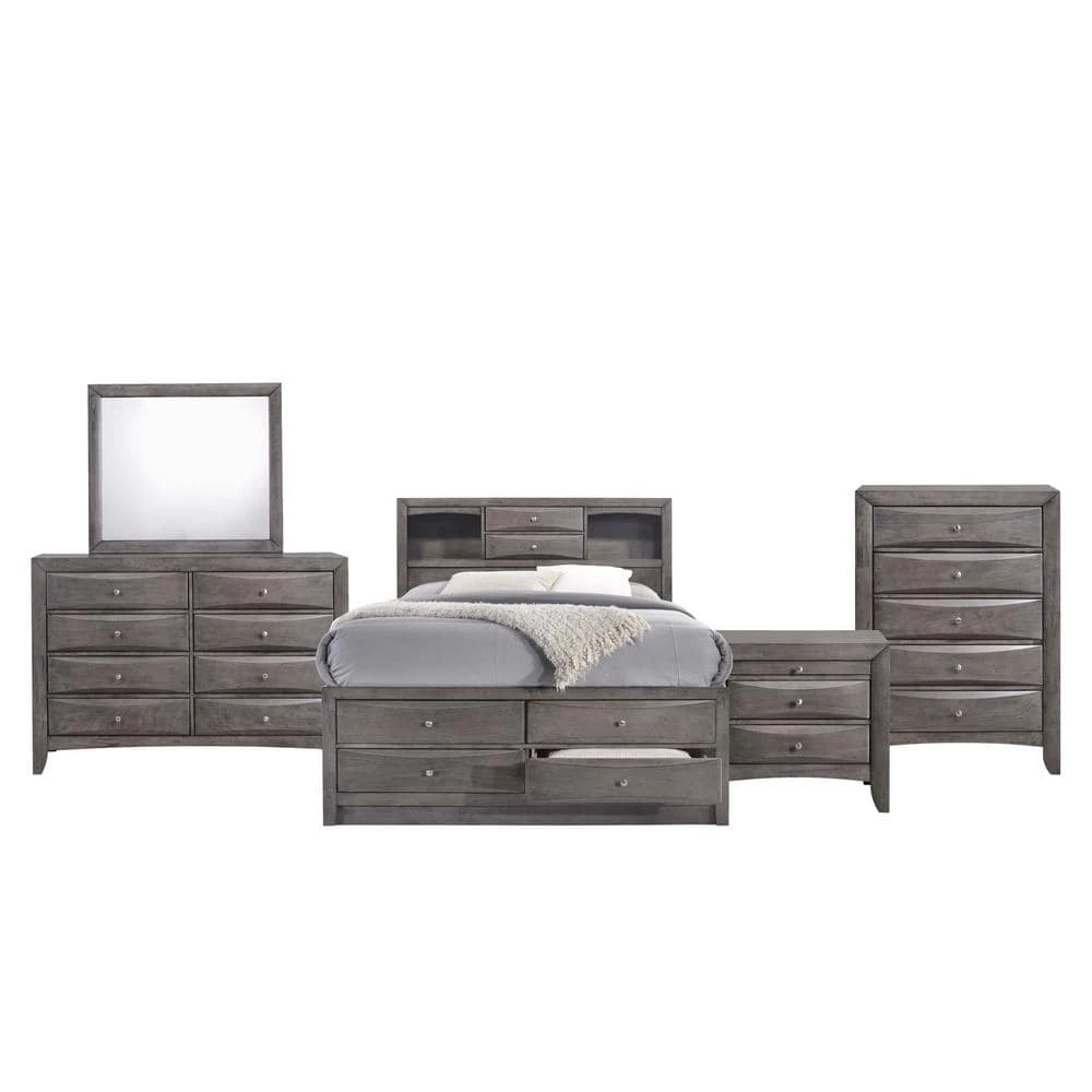 The Picket House Furnishings Madison King-storage 5-piece Bedroom Set will keep you organized. Its contemporary, contoured-drawers give it a custom look. Plenty of-storage is provided throughout all case-pieces as well as on all sides of the bed. This set is sure to add functionality and beauty to any room.