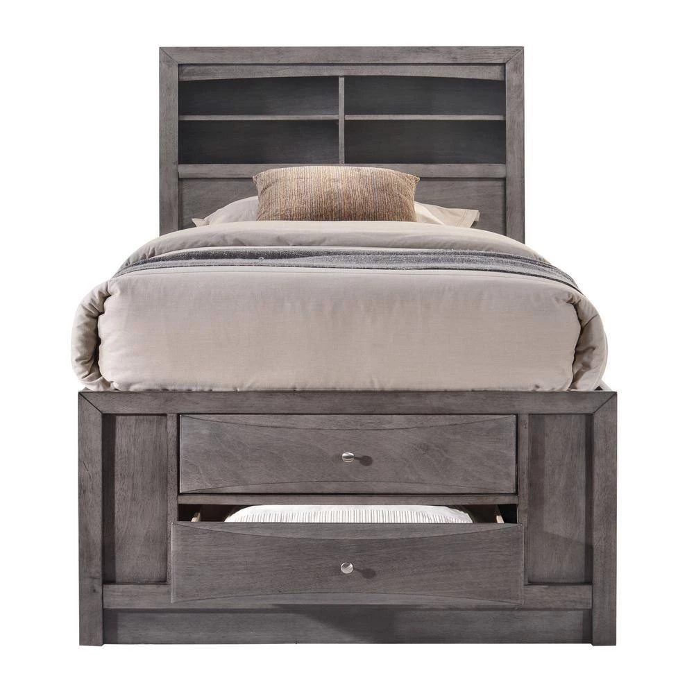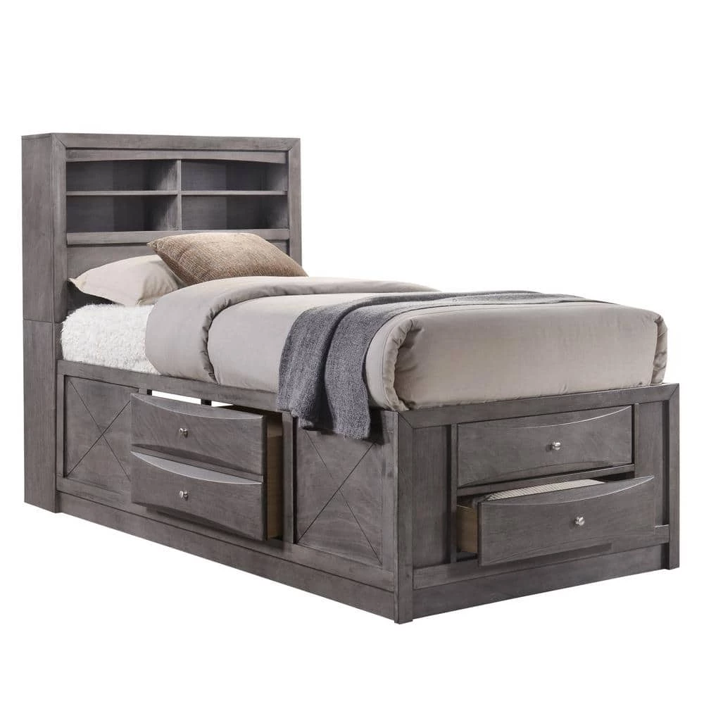 The Picket House Furnishings Madison Twin Storage 5PieceBedroom Set will keep you organized. Its contemporary, contoured drawers give it a custom look. Plenty of storage is provided throughout all case pieces as well as on all sides of the bed. This set is sure to add functionality and beauty to any room.