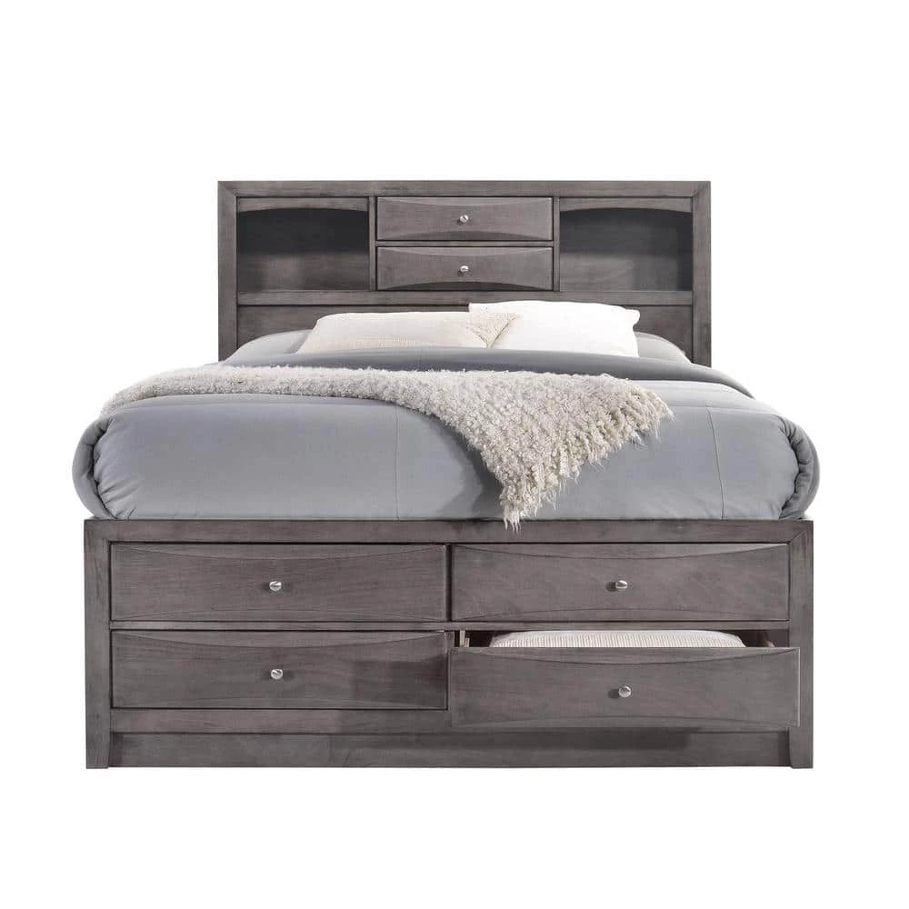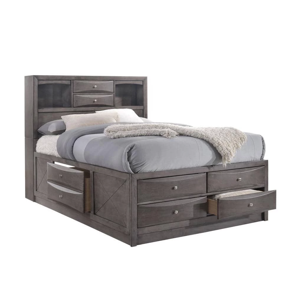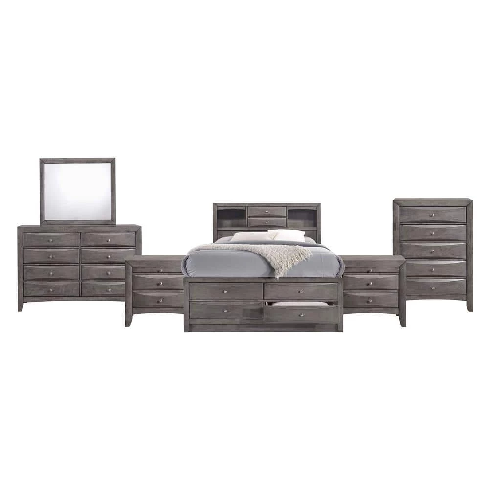 The Picket House Furnishings Madison Queen Storage 6-Piece Bedroom Set will keep you organized. Its contemporary, contoured drawers give it a custom look. Plenty of storage is provided throughout all case pieces as well as on all sides of the bed. This set is sure to add functionality and beauty to any room.