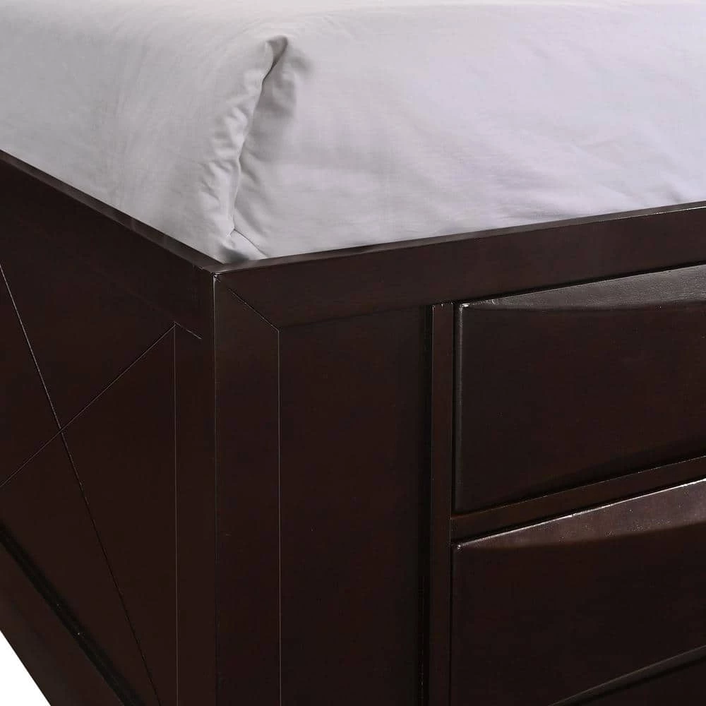 The Picket House Furnishings Madison Queen Storage Bed will add style and sophistication to any bedroom. Featuring 4-storage drawers in the footboard, 2 in each side rail, 2-drawers in the headboard and 2-shelves. Storage space will not be an issue with this bed. Its rich mahogany finish and contemporary contoured drawers give it a custom look.