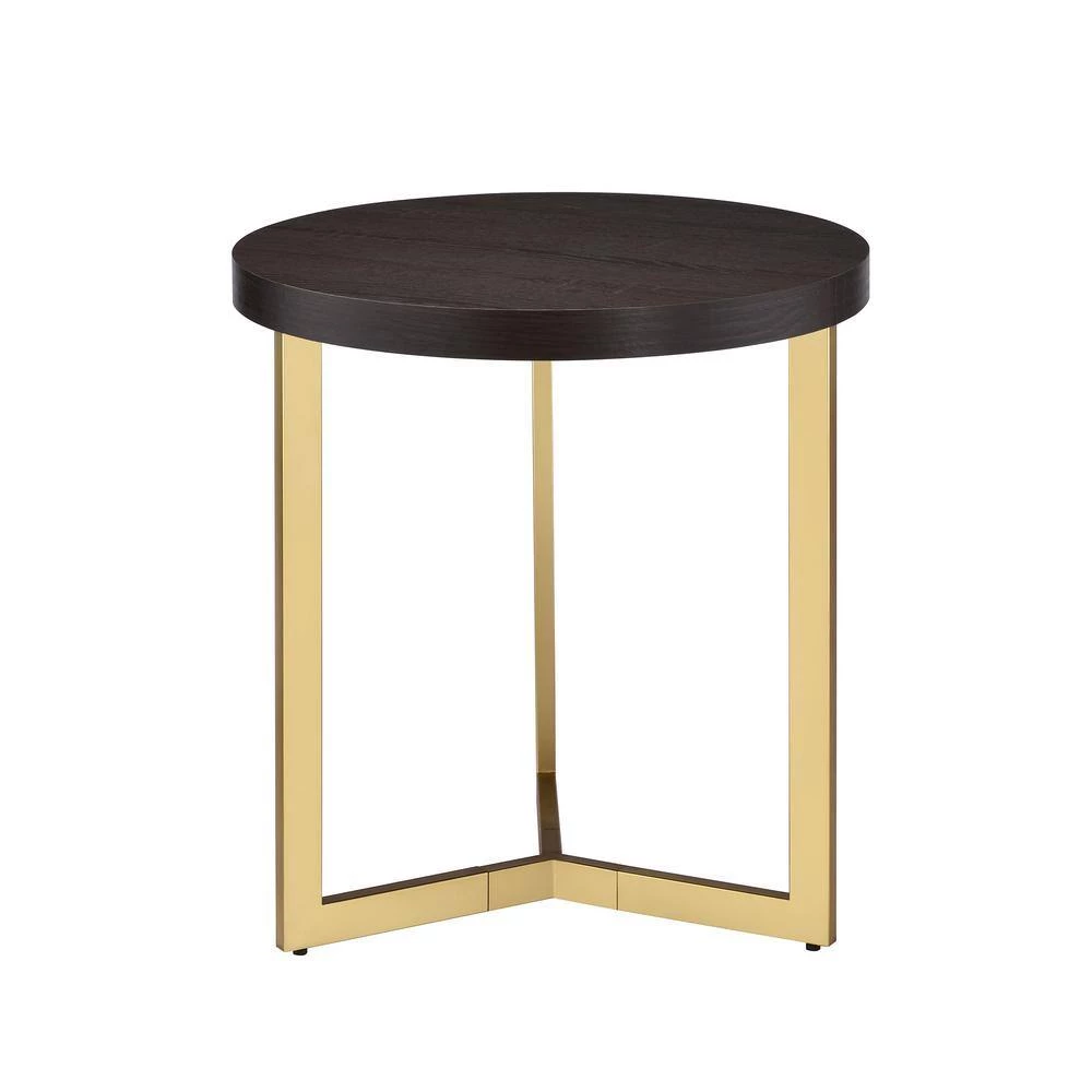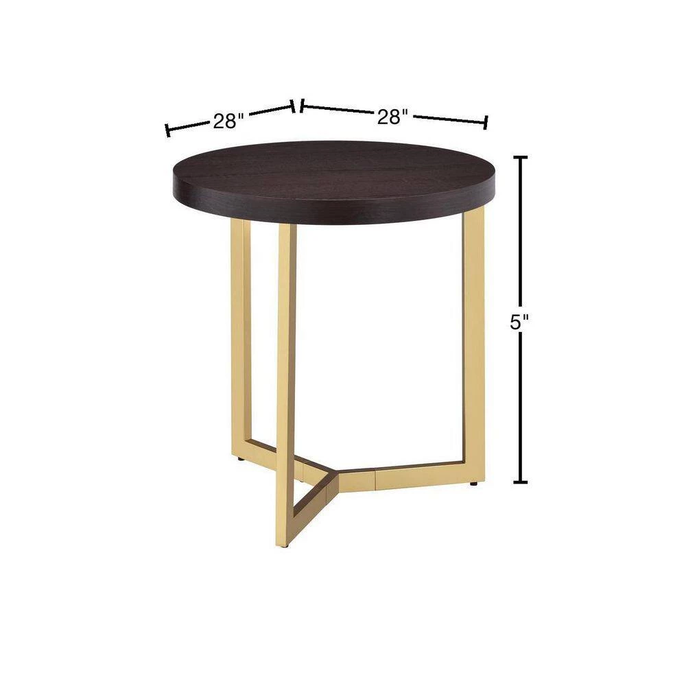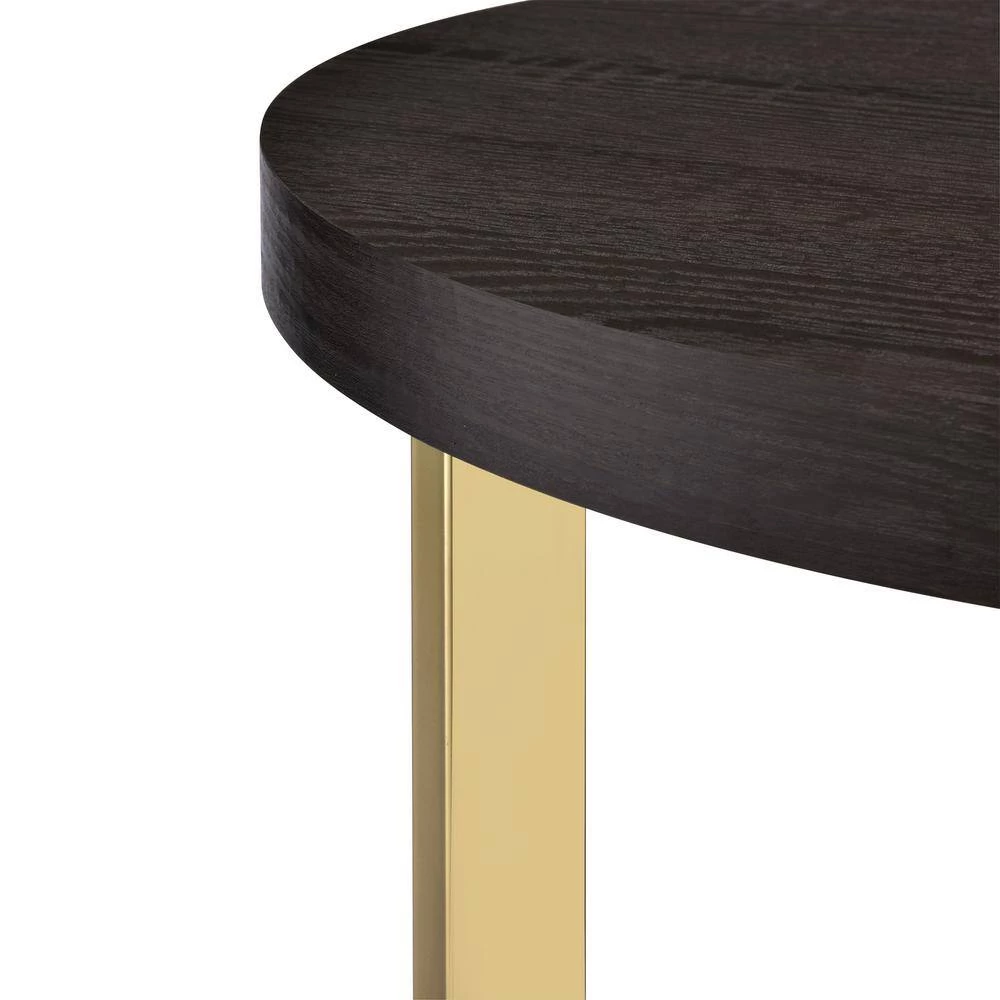 The Picket House Furnishings Melrose End Table will instantly glam up your living room. This round end table features a sleek, gold metal base that pairs perfectly with the espresso finish top. The table top of the table is also distressed, adding a little extra flair to this already stunning piece. This end table has a three leg design style that gives an update to this living room staple. Add this glamorous coffee table to your home today for a look you’ll never tire of.