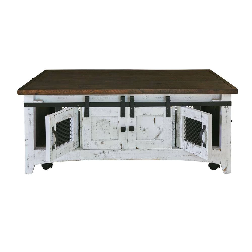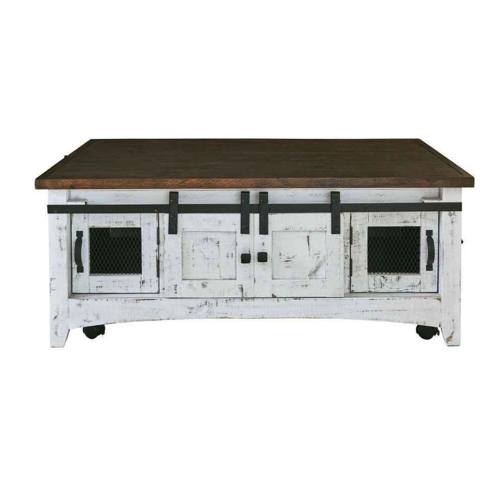 The Picket House Furnishings Nolan Coffee Table is going to look stunning in your living room. This living room staple features a rustic, farmhouse style that will instantly take your home from drab to fab. The two tone, distressed finish will easily pair with any existing decor you might have. Easily store away books, games or remotes in the sliding cabinet doors. Another great feature is the casters that allow you to move this coffee table with ease to accommodate a spontaneous game night.