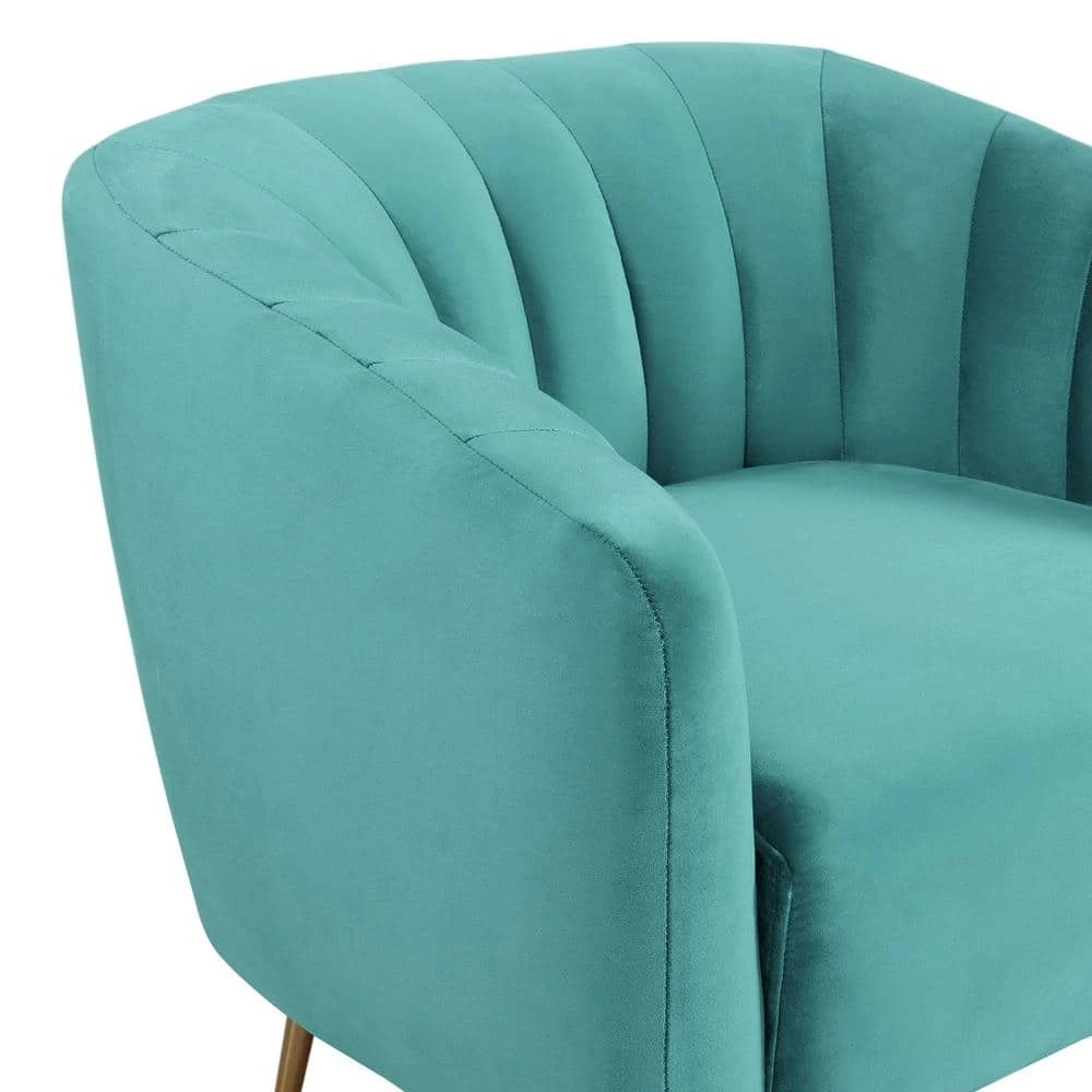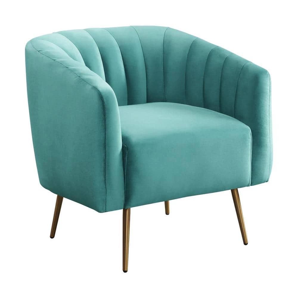 The Picket House Furnishings Lucia Accent Chair is the bold yet subtle element that completes your home. The Lucia showcases a unique barrel silhouette with channel tufting in luxurious velvet fabric. Supported by bold and angled gold metal legs. This accent chair features plush foam padding that will provide you enhanced comfort. Perfectly ideal to place in your living room, dining room, office, or bedroom for modern styling. Available in various eye-catching colors.