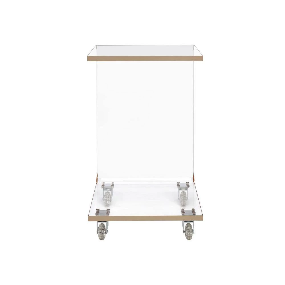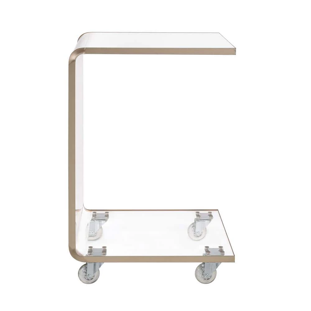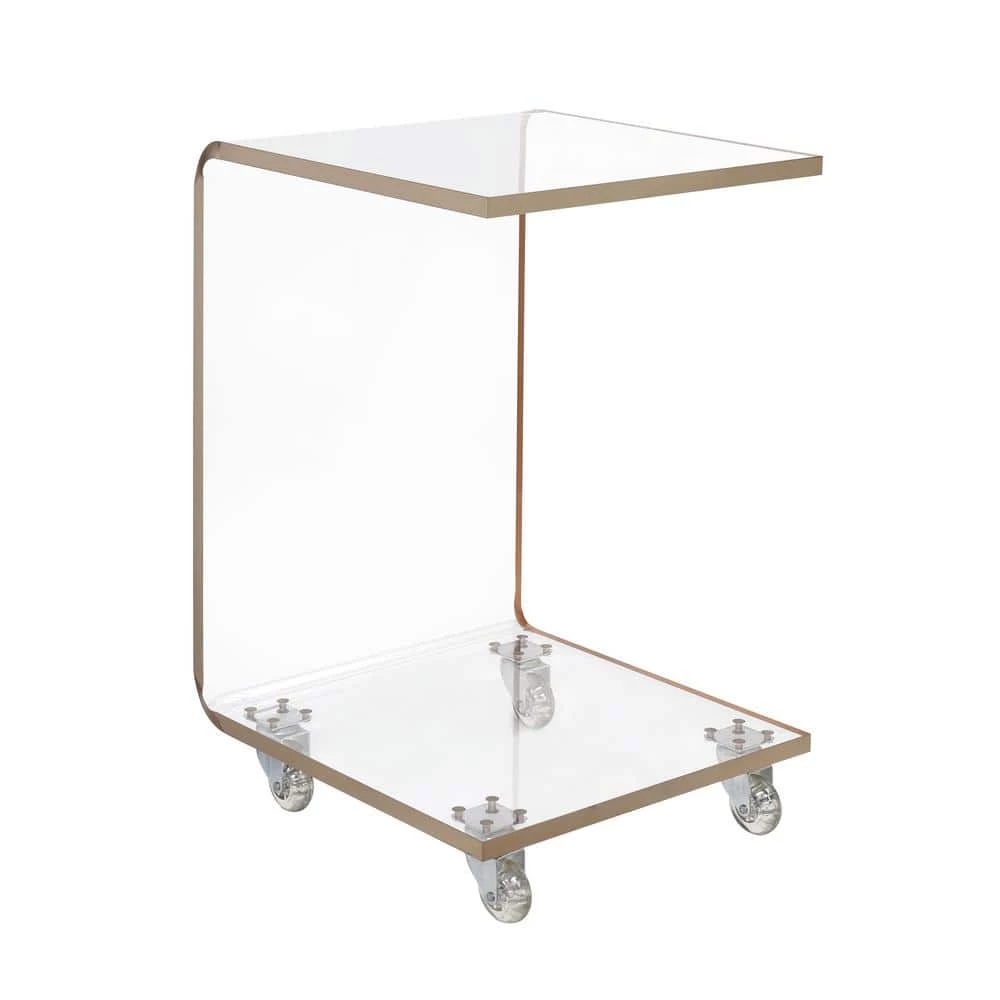 The Picket House Furnishings Peek Acrylic Snack Table is the missing piece to your home. This table comes on clear casters. Don’t worry if casters aren’t your style, they can easily be removed. Roll this snack table with ease up to your sofa and find a spot for your drinks and snacks while you binge watch your favorite shows. The shelf on the bottom lets you add your personal style with any of your favorite decor. The entire table is made out of clear acrylic, making it permanent staple in your home year after year.