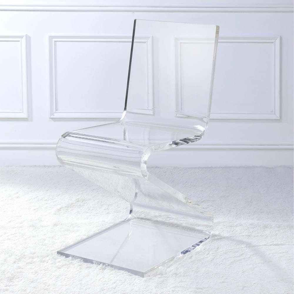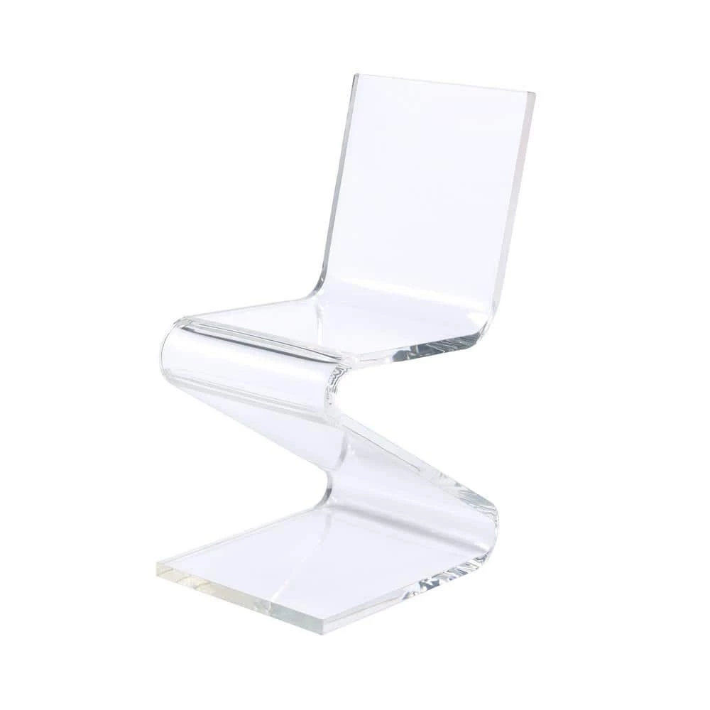 The Picket House Furnishings Peek Acrylic Z-Chair is the missing piece to your home. This super stylish chair can go anywhere in your home thanks to its clear, modern style. Pair this chair with a cool dining table or just make it a standout on its own in your bedroom or living room; the options are limitless. The chair features a solid seat and back and the entire chair is made out of acrylic. Add this Z-Chair to your home today for an instant touch of glam.