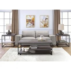 Ashby 55 in. Rectangle Light Grey Metal 3 Drawer Computer Desk by Picket House Furnishings