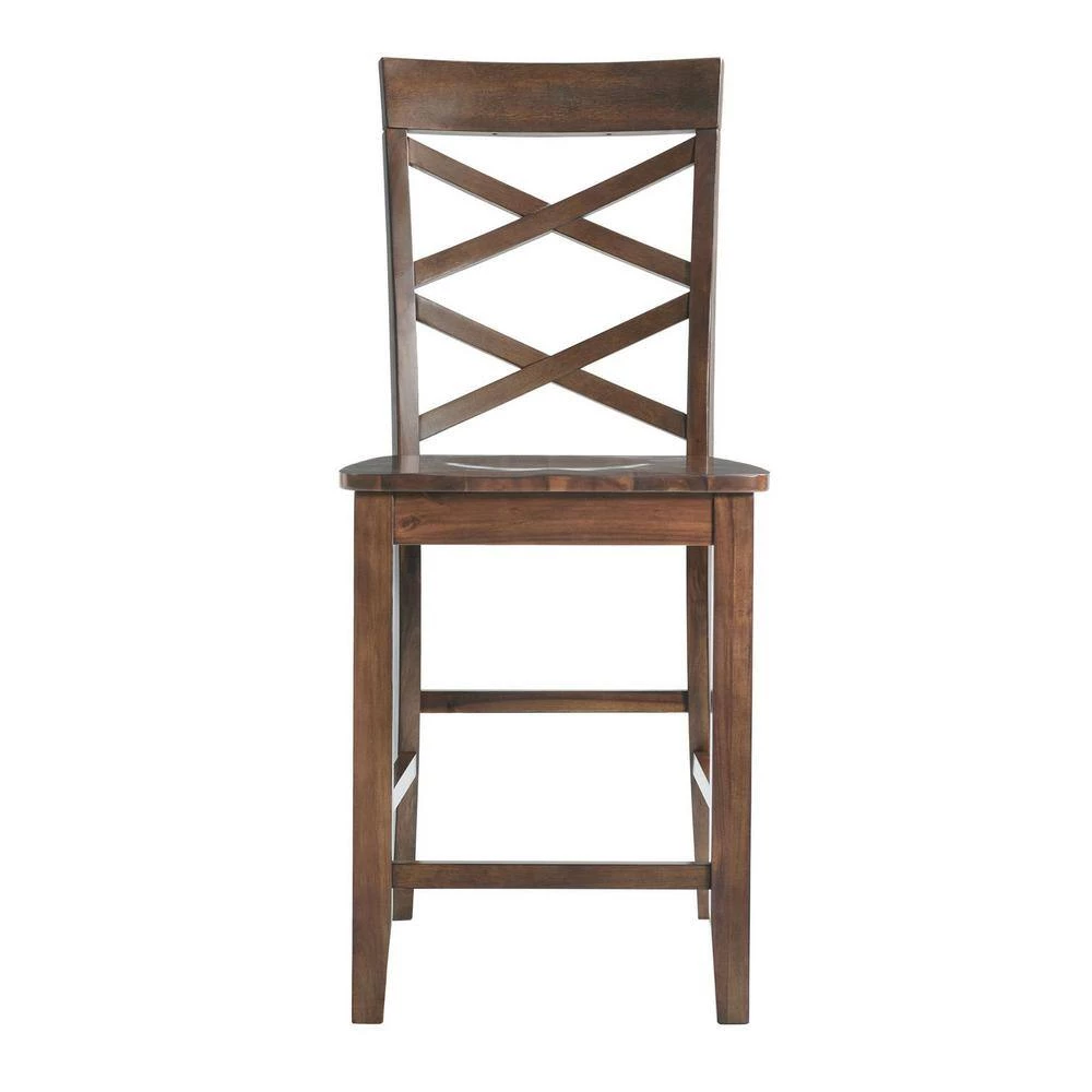 The Picket House Furnishings Regan Counter Side Chair Set in Cherry will be a standout in your kitchen. Constructed of nice Acacia solid wood to withstand years of usage. The side chairs are designed with an intricate cross back design. The warm cherry finish of the complete set can effortlessly fit in with any other decor in your home. Add a warm touch to your dining room with the Regan Side Chair Set. Includes two side chairs in one box.