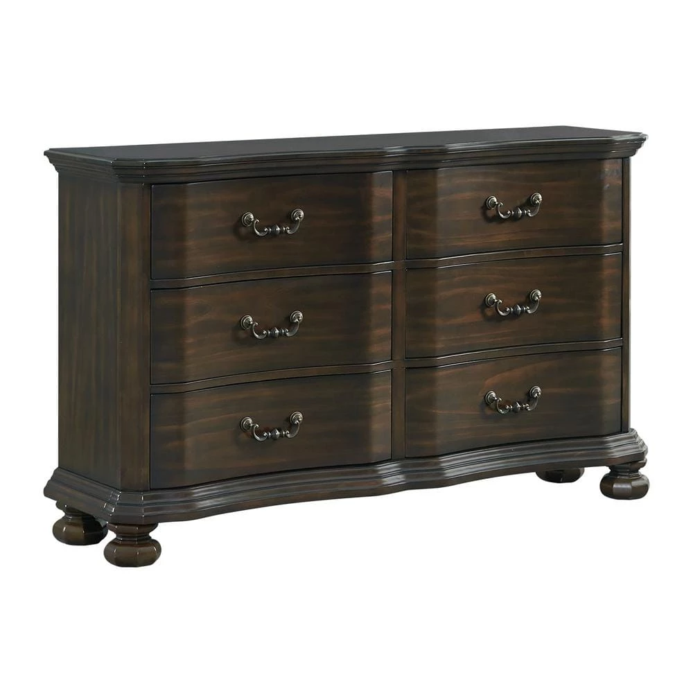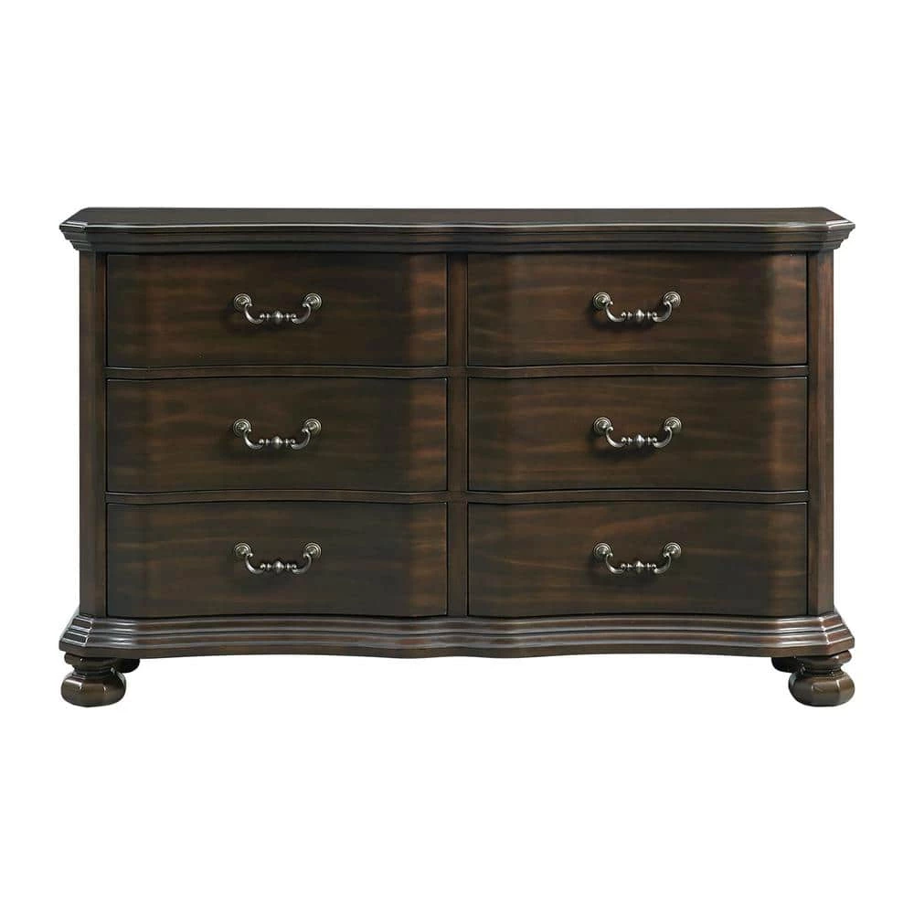 The Picket House Furnishings Serena 6-Drawer Dresser is the missing piece in your bedroom. This traditional, horizontal dresser offers spacious storage in its six drawers. Black, felt-lining in the top drawers allows you to store away your more delicate belongings. The bottom drawers come with a dust proofing layer to help protect your clothes. Raised drawer fronts with bevel edges add extra flair to this already stunning piece. Antique drawer pulls complement the rich, espresso finish beautifully. Add this dresser to your home today for a look that will never go out of style.