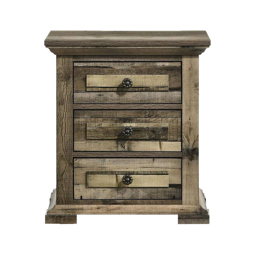 The Picket House Furnishings Shayne 3-Drawer Nightstand is going to look stunning in your bedroom. This bedside staple comes with three, spacious drawers, great for storing away your belongings. The top drawer is felt-lined in black, letting you easily storing away your more valuable items. This nightstand features a unique, paper finish that conveys wood grain details throughout, instantly giving you a natural, drfit finish. Antique, rosette drawer knobs complement the paper finish beautifully. The bold, rustic design will be a look you enjoy coming home to day after day.