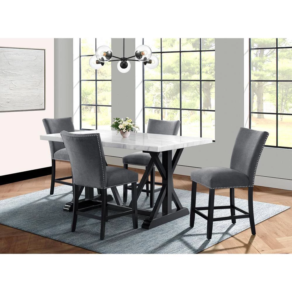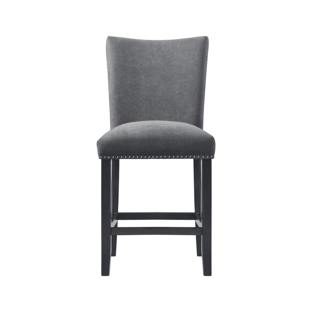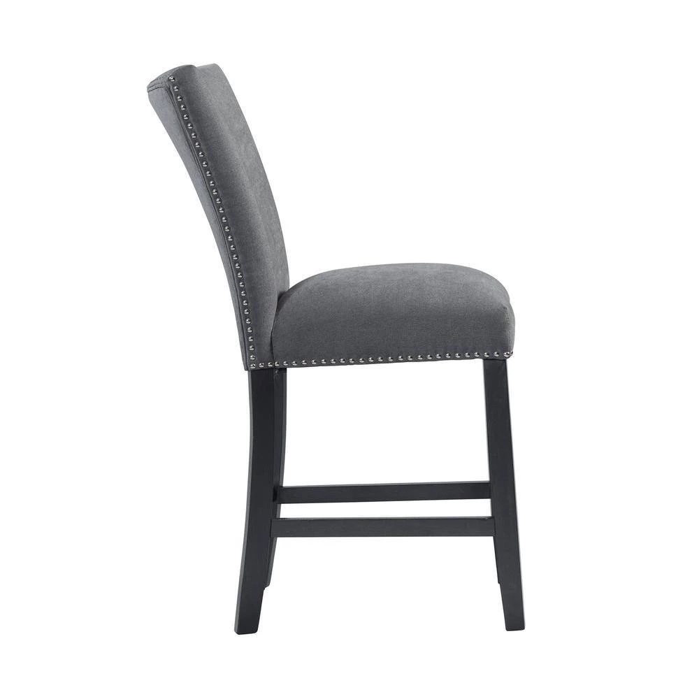 The Picket House Furnishings Stratton Counter Height Side Chair Set is going to look gorgeous in your dining room! This counter height set includes two side chairs, that are upholstered in a transitional, charcoal fabric. Chrome nailhead trim outlines the edges of the chairs, instantly adding extra flair to this already stylish duo. The foam cushion seat and back will keep you plenty comfy through even the longest of dinners. The tall solid back adds a little extra drama, creating a look that you’ll never tire of! Add these chairs to your dining room today!