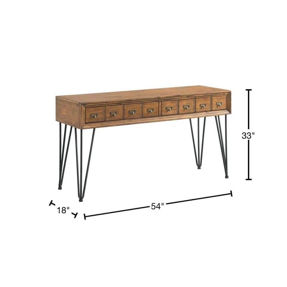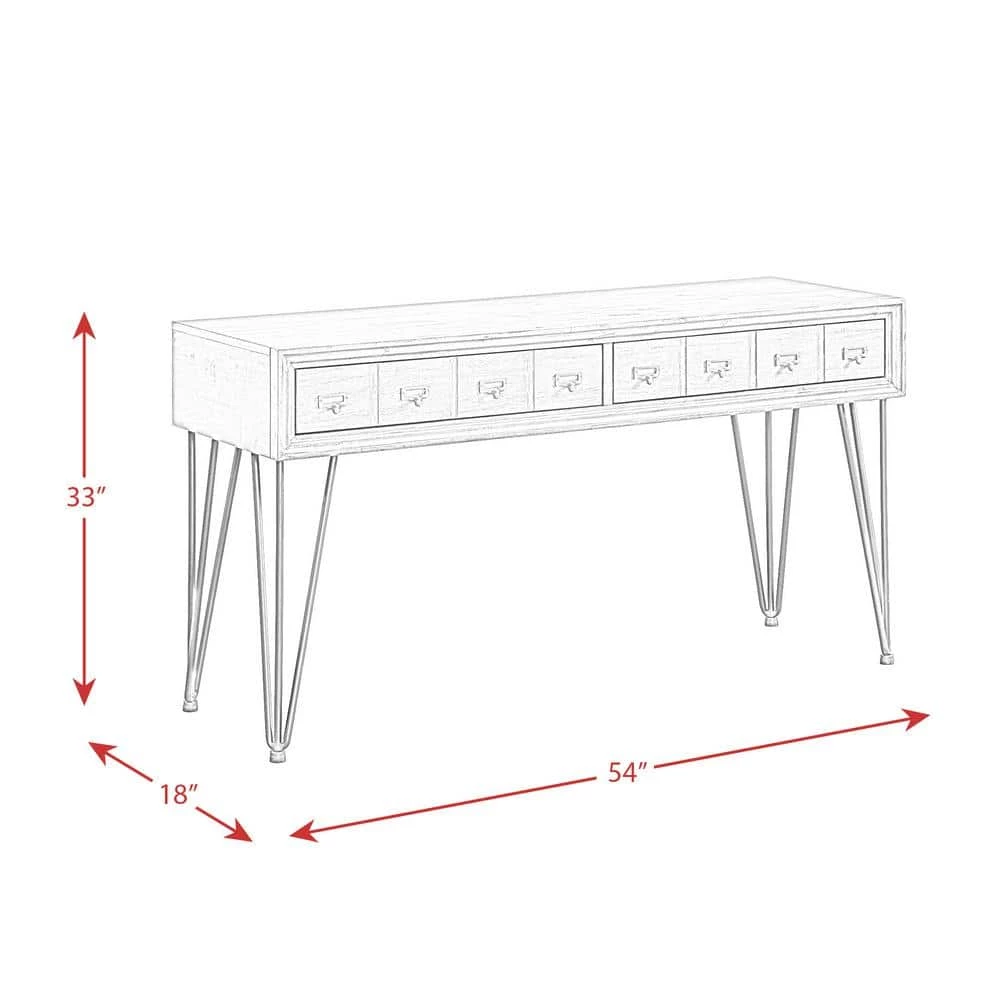 The Picket House Furnishings Tanner Storage Sofa Table is the perfect addition to your home. This rectangle sofa table comes with two drawers, ideal for storing away any belongings that need a home. The apothecary style drawer fronts on this table add extra flair to this already stylish table and it pairs perfectly with the hairpin legs. The dark metal legs complement the light walnut beautifully. This table can not only be displayed in your living room, but it will also make a great entry way table. Along the front edge, you’ll find beveled edges adding a classic touch to this transitional design.