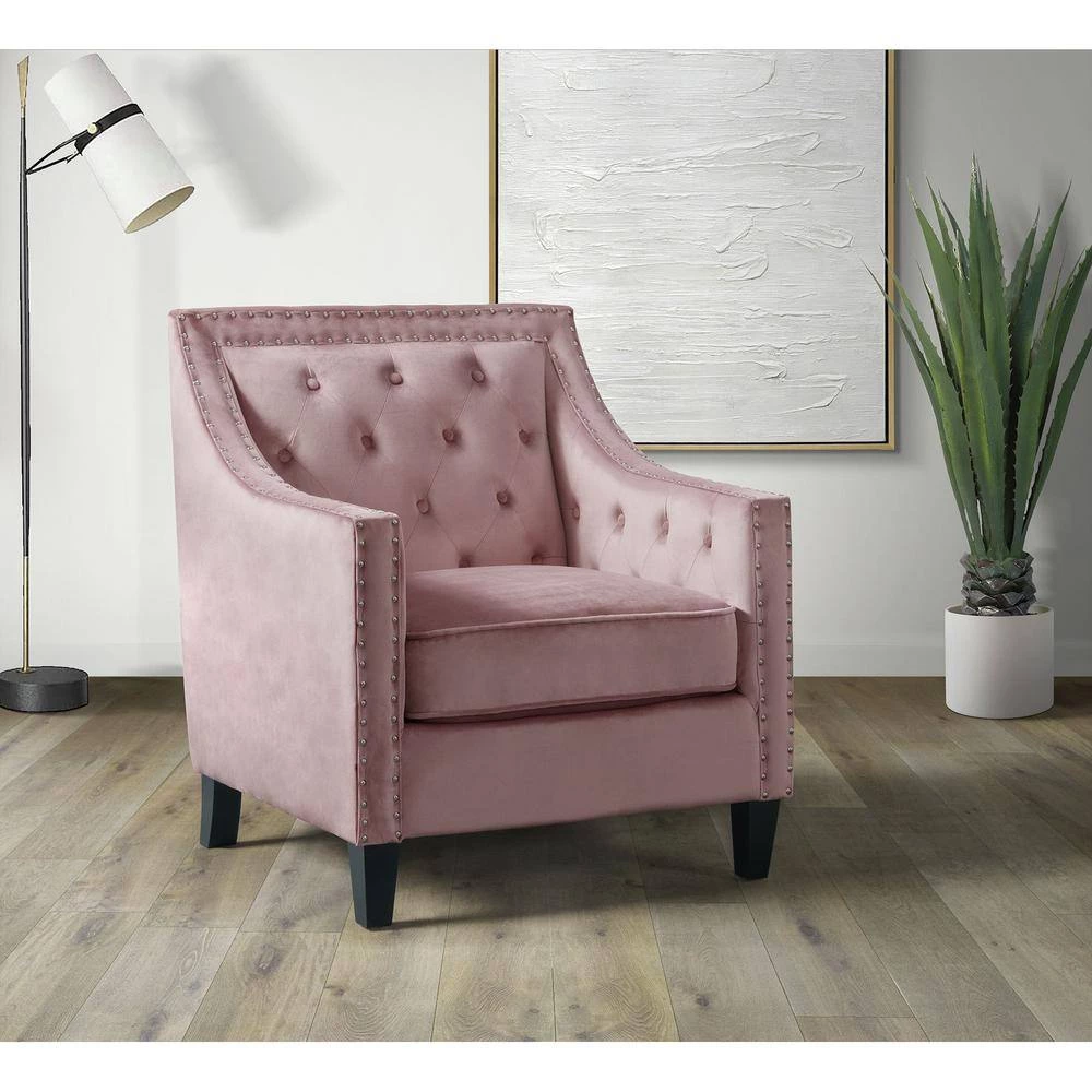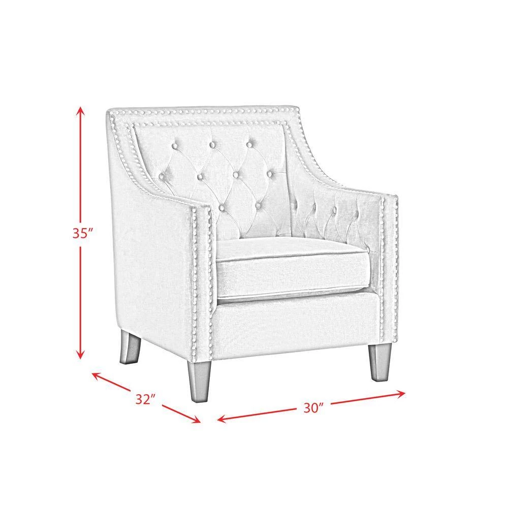 The Picket House Furnishings Teagan Accent Chair is the piece you’ve been missing. This chair is perfect for your modern home aesthetics. Crafted in plywood, rubberwood, and upholstered in soft velvet fabric. Adds an interesting touch with its silver nail head trim and diamond tufting at back. Add the Teagan accent chair to your home for a modern touch.