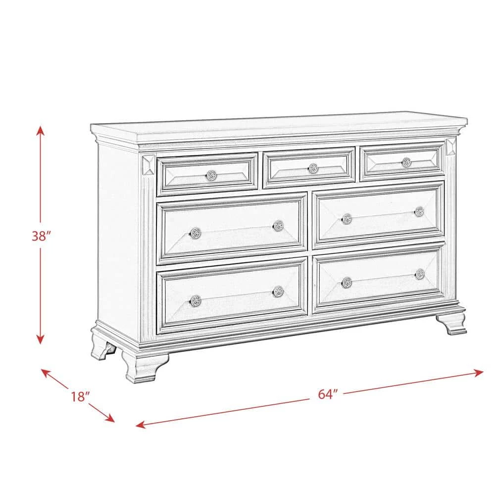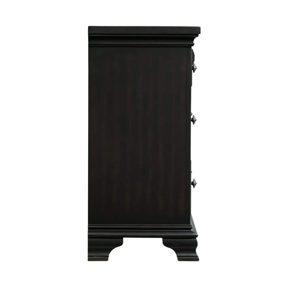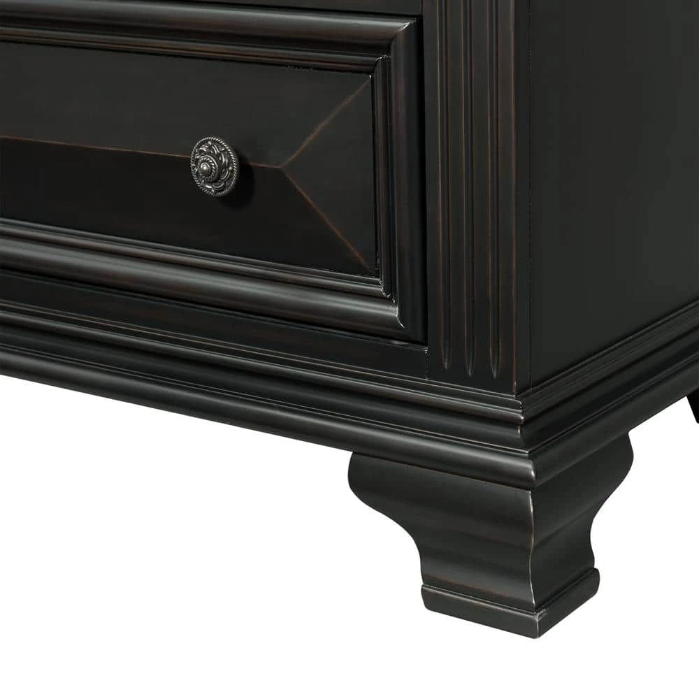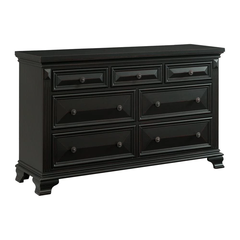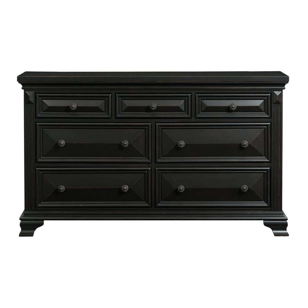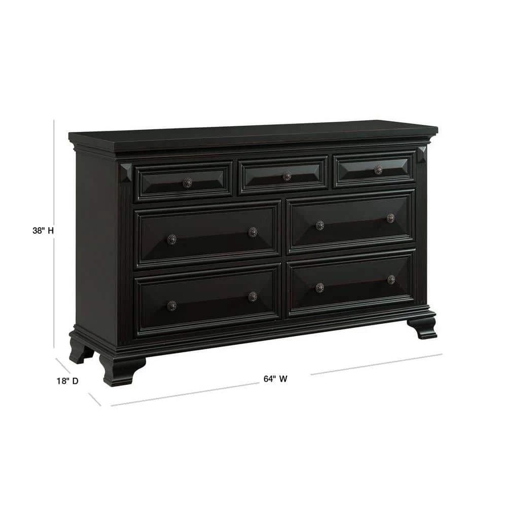The Picket House Furnishings Trent 7-Drawer Dresser is the perfect addition to your bedroom. This horizonal dresser comes with seven, spacious drawers, more than enough storage space to store away your belongings. The top drawers are felt lined, protecting your more delicate belongings. The bottom drawers are cedar lined and feature a dust proofing layer to help protect your clothes. Raised drawer fronts add an extra element of design to this already stunning set. The dark metal finish hardware pairs perfectly with the antique black finish, making this transitional group a staple in your home for years to come.