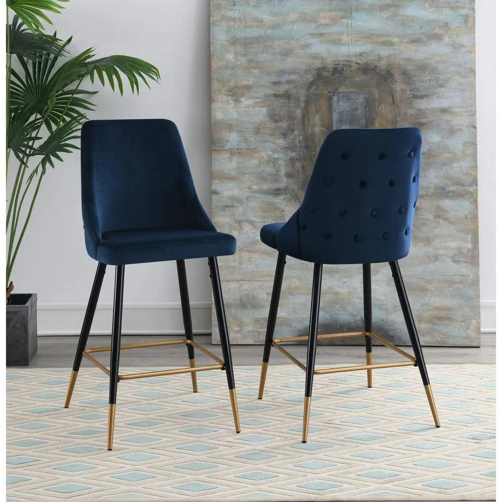 The Picket House Furnishings Zia creates the luxurious dine-in experience your kitchen is missing. Pull up to your home bar or kitchen island in style. Up top, the bar stool is fully upholstered in soft, polyester with a high, slightly curved back. The seat is filled with foam for enhanced all day comfort. Down below, the base is constructed of black metal legs with gold tips creating a snazzy accent. Enjoy your next cocktail or meal in style with the Zia Bar Stool. Includes 2-bar stools that ship in one convenient box.