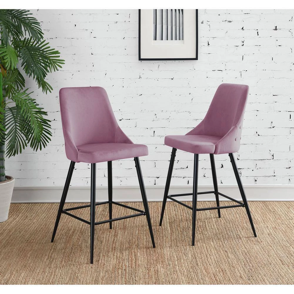 The Picket House Furnishings Ziva creates the luxurious dine-in experience your kitchen is missing. Pull up to your home bar or kitchen island in style. Up top, the bar stool is fully upholstered in soft, polyester with a high, slightly curved back. The seat is filled with foam for enhanced all day comfort. Down below, the base is constructed of black metal and splayed legs creating a snazzy accent. Enjoy your next cocktail or meal in style with the Ziva Bar Stool. Includes 2-bar stools that ship in one convenient box.