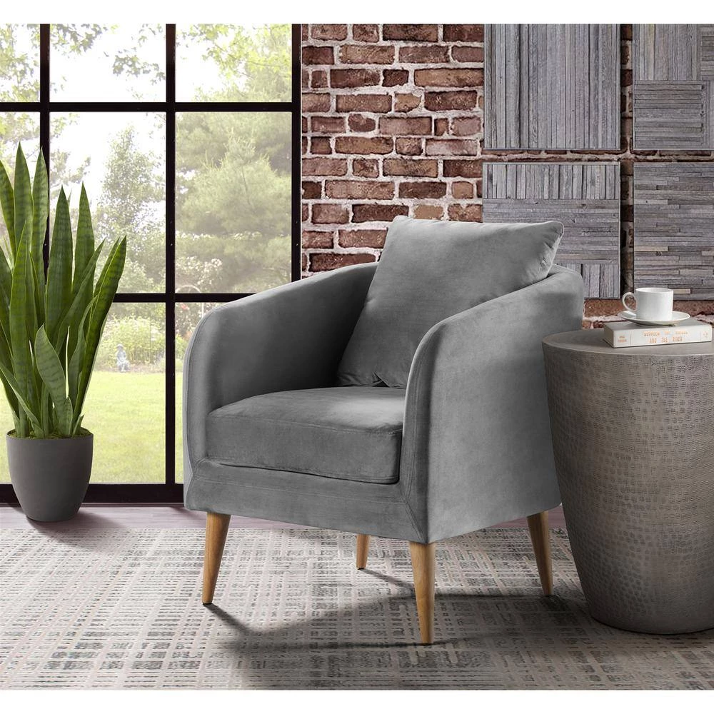 The Picket House Furnishings Zoe Accent Chair is the perfect addition to your home. Upholstered in a soft, rich polyester fabric and set on four, sturdy wooden legs. Solidly constructed of plywood for years of durability. This accent chair combines contemporary style with a mid-century look. With a curved silhouette, perfect for lounging in comfort.